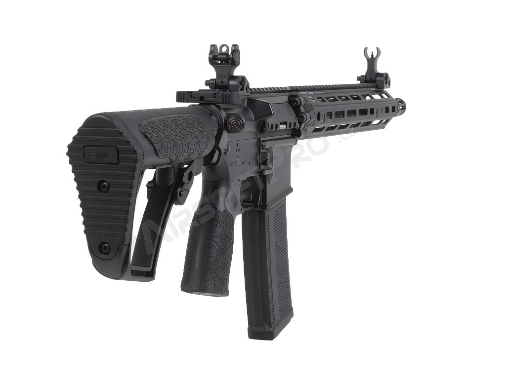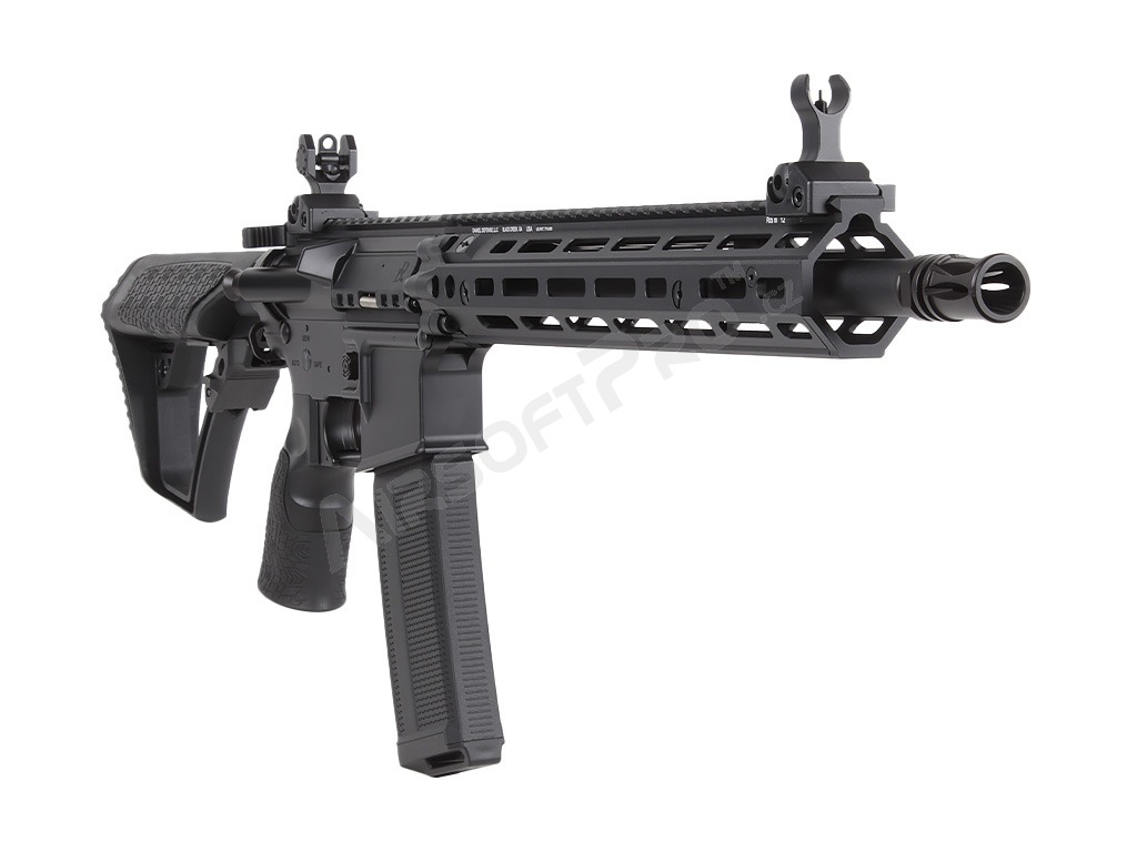 Telo zbrane je vyrobené z vysoko kvalitnej hliníkovej zliatiny s precíznym spracovaním na CNC strojoch. Hlavným lákadlom je licencované predpažbie Daniel Defense RIS III M-LOK, ktoré poskytuje dostatok priestoru na montáž taktického príslušenstva (svietidlá, lasery, gripy). Pažba typu ETA a ergonomická pištoľová rukoväť sú vyrobené z odolného polyméru. Zbraň je osadená QD body pre rýchle uchytenie popruhu a obojstrannými prvkami pre maximálny komfort ovládania.