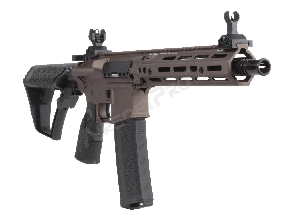 Telo zbrane je vyrobené z vysoko kvalitnej hliníkovej zliatiny s precíznym spracovaním na CNC strojoch. Hlavným lákadlom je licencované predpažbie Daniel Defense RIS III M-LOK, ktoré poskytuje dostatok priestoru na montáž taktického príslušenstva (svietidlá, lasery, gripy). Pažba typu ETA a ergonomická pištoľová rukoväť sú vyrobené z odolného polyméru. Zbraň je osadená QD body pre rýchle uchytenie popruhu a obojstrannými prvkami pre maximálny komfort ovládania.