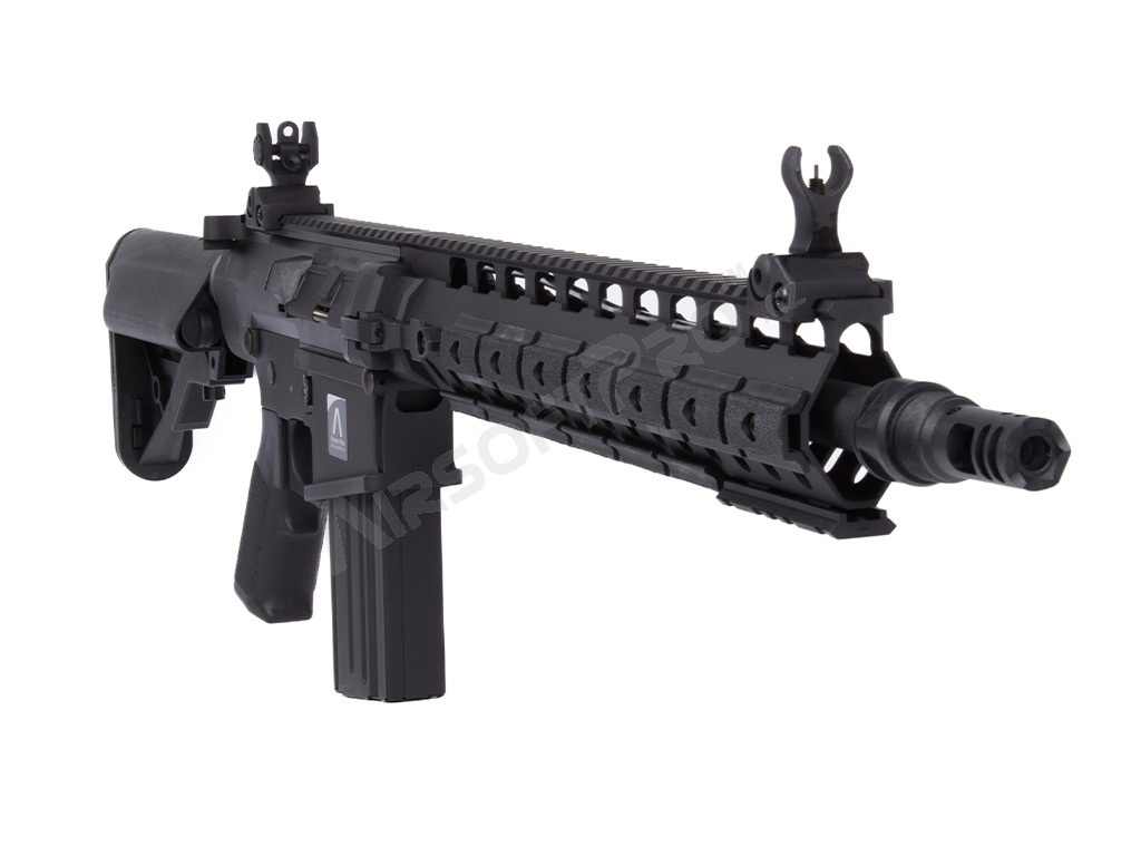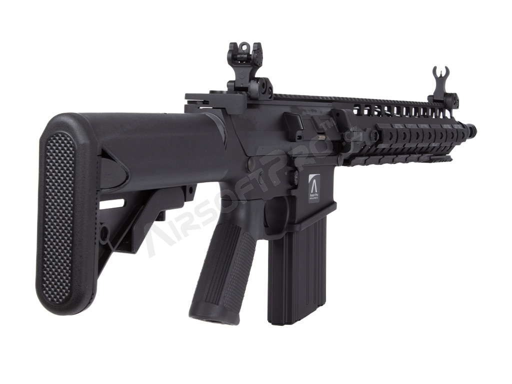 Pažbička a výsuvná 5-polohová pažba, ktorá slúži ako úložisko akumulátora, sú vyrobené z kvalitného polyméru. Pažbička má zdrsnenie pre lepší a istejší úchop, pätka pažby je gumová. Telo a predpažbie je čierno eloxované pre dobrú ochranu proti korózii as odolnosťou proti oteru.