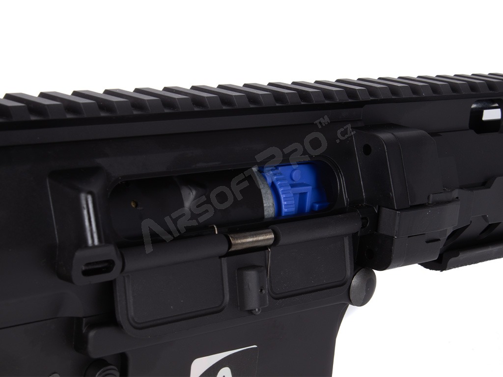 Natiahnutím obojstrannej naťahovacej páky sa sprístupní rotačný prstenec hop-up komory (štýlu ProWin). Imitácia záveru je aretovaná, takže nastavovanie komory je veľmi pohodlné. Uvoľňovač záveru je funkčný a rovnako ako pri ostrej predlohe je umiestnený na ľavej strane tela. Na tejto strane je aj klasický prepínač režimu streľby. Uvoľňovač zásobníka je jednostranný, na pravej strane tela. Na lúčiku je vyrazený typ zbrane a unikátne sériové číslo.