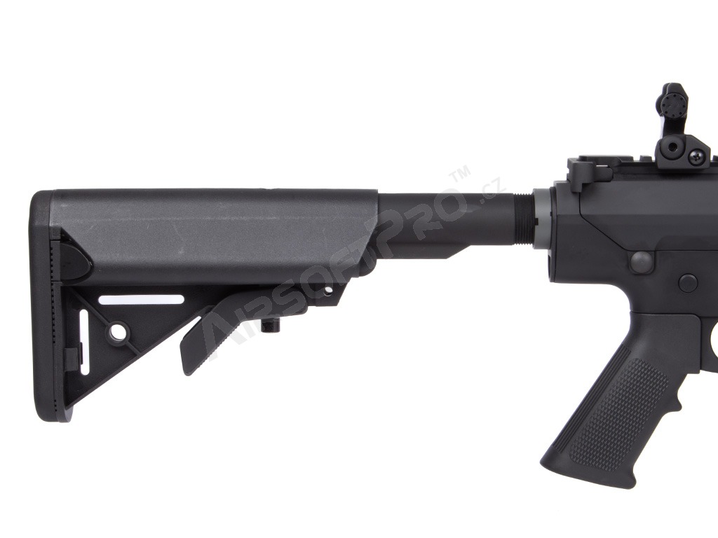 Pažbička a výsuvná 5-polohová pažba, ktorá slúži ako úložisko akumulátora, sú vyrobené z kvalitného polyméru. Pažbička má zdrsnenie pre lepší a istejší úchop, pätka pažby je gumová. Telo a predpažbie je čierno eloxované pre dobrú ochranu proti korózii as odolnosťou proti oteru.