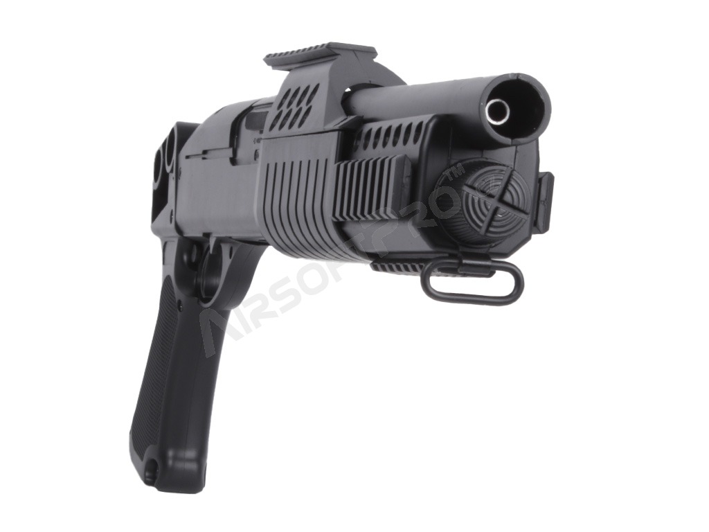 Airsoft brokovnica M180-A1 CQB bez pažby, krátka [AGM] Airsoftová brokovnica M180-A1 CQB je ľahká, dobre ovládateľná pumpovacia brokovnica vhodná najmä pre začiatočníkov a rekreačnú streľbu. Celoplastová konštrukcia s pištoľovou rukoväťou poskytuje pohodlný úchop a nízku hmotnosť. Zbraň strieľa po jednej guličke na jeden stisk spúšte.