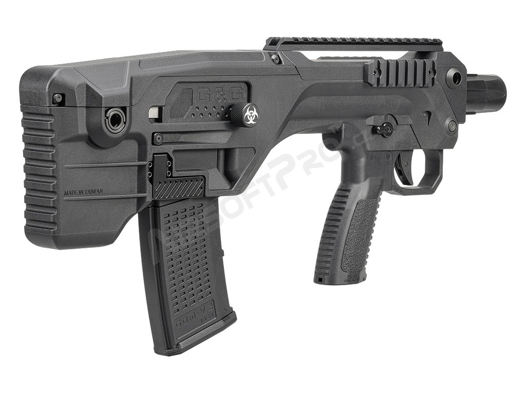 Brokovnica je určená pre rýchle a efektívne "čistenie" miestností pri CQB hrách. Medzi výhody tejto zbrane patrí okrem skvelého materiálového spracovania, ktoré je u G&G štandardom, kompatibilita s M4 AEG zásobníkmi, obrovský zásobník plynu v pažbe zbrane a jednoduchá obsluha. Brokovnica na jeden výstrel vystrelí 5 alebo 10 guličiek s rozptylom, ktorý pri boji na blízko oceníte.