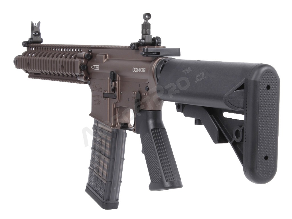 Airsoftová GBB zbraň Daniel Defense MK18 10,5", plyn blowback CGS - FDE [CYMA]