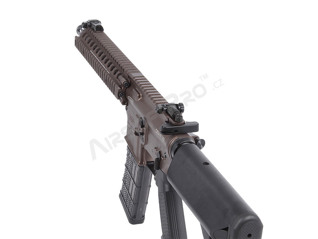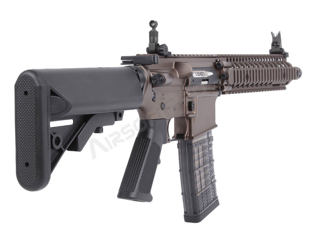 Kompaktná 10,5" vonkajšia hlaveň robí z tejto pušky ideálny nástroj pre CQB aj boj na stredné vzdialenosti. Zbraň je osadená nastaviteľnou pažbou typu CRANE. Autentickosť dopĺňa licencovaný tlačný zásobník Lancer Systems L5 AWM.