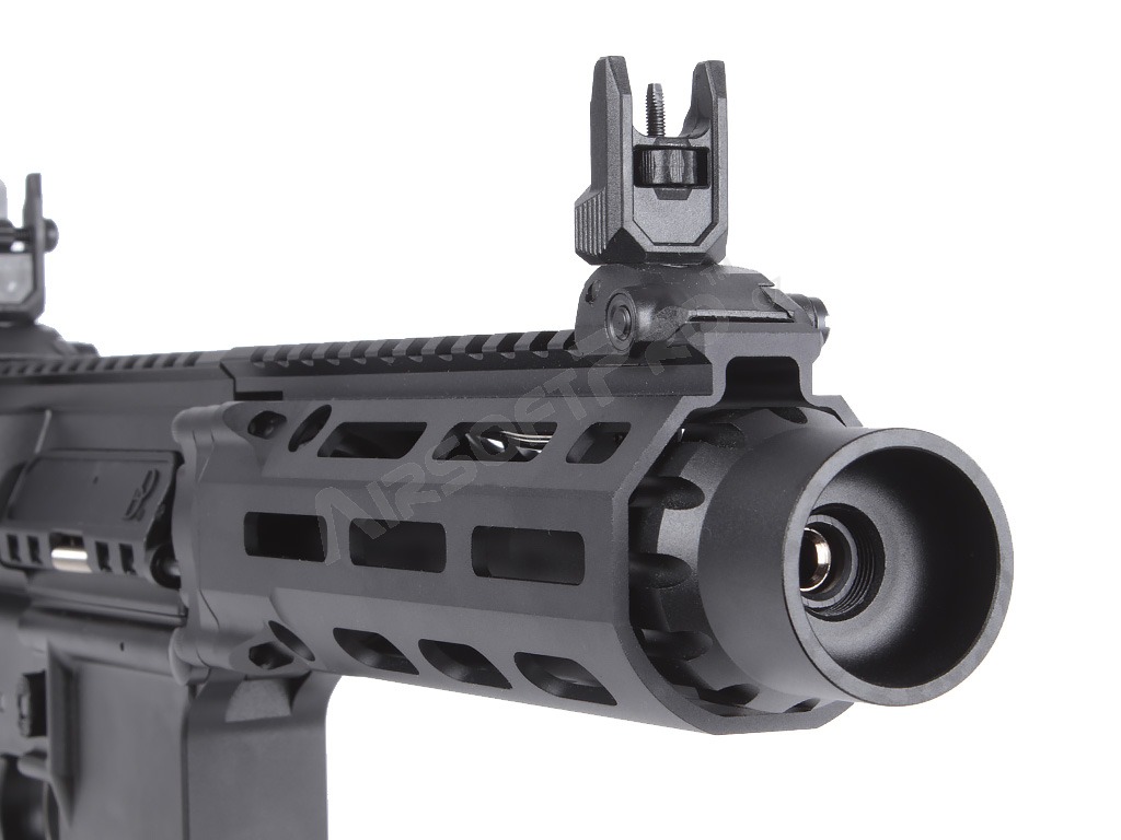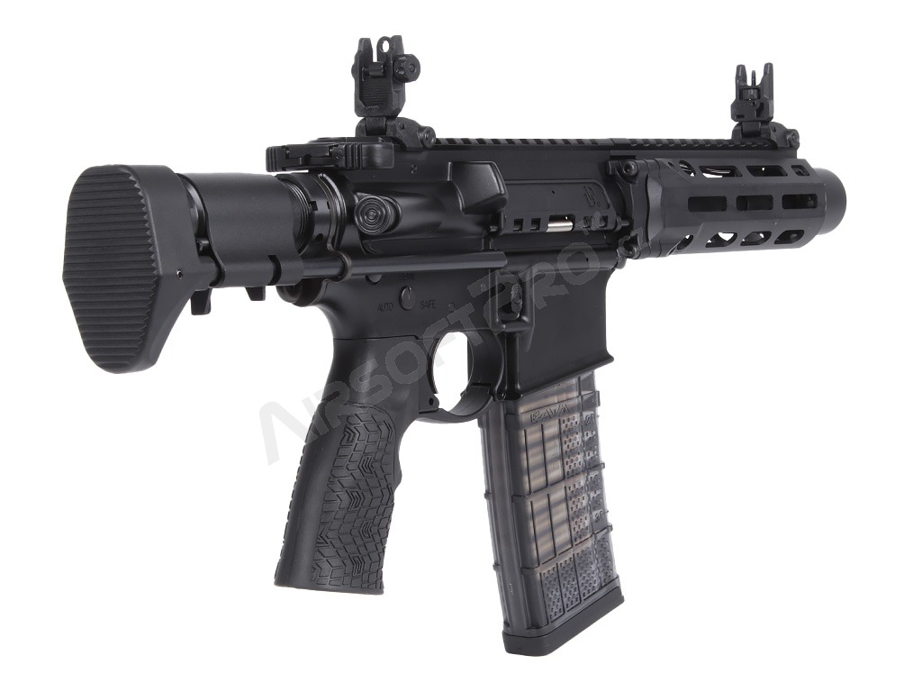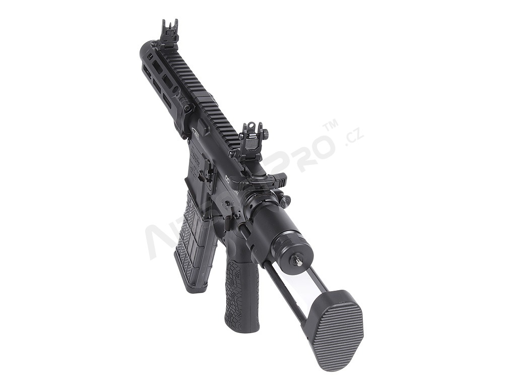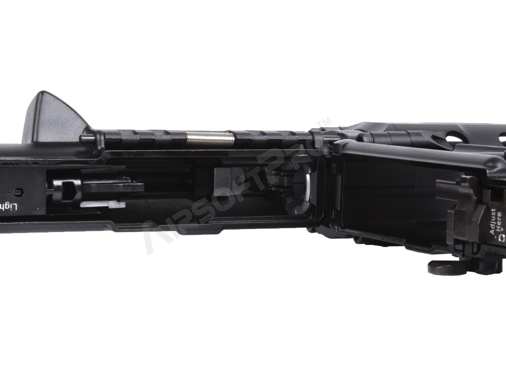 Kompaktná 7" vonkajšia hlaveň robí z tejto pušky ideálny nástroj pre CQB. Zbraň je osadená kovovou vysúvacou pažbou. Autentickosť dopĺňa licencovaný tlačný zásobník Lancer Systems L5 AWM na 30 rán s realistickým značením.