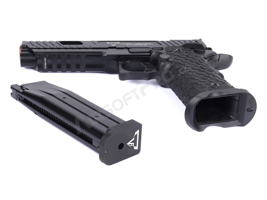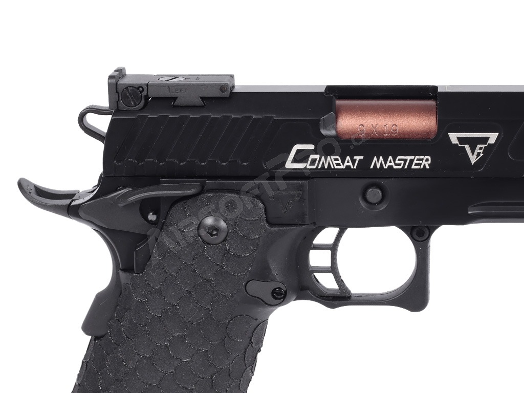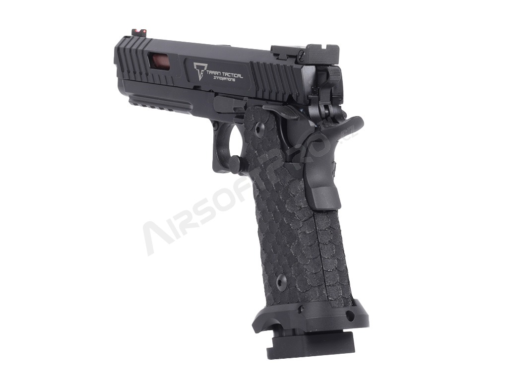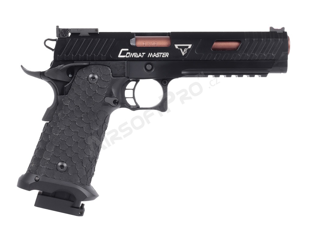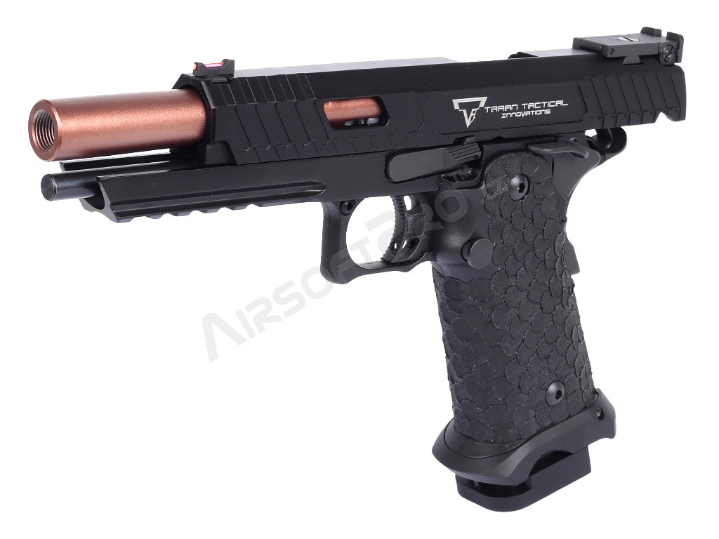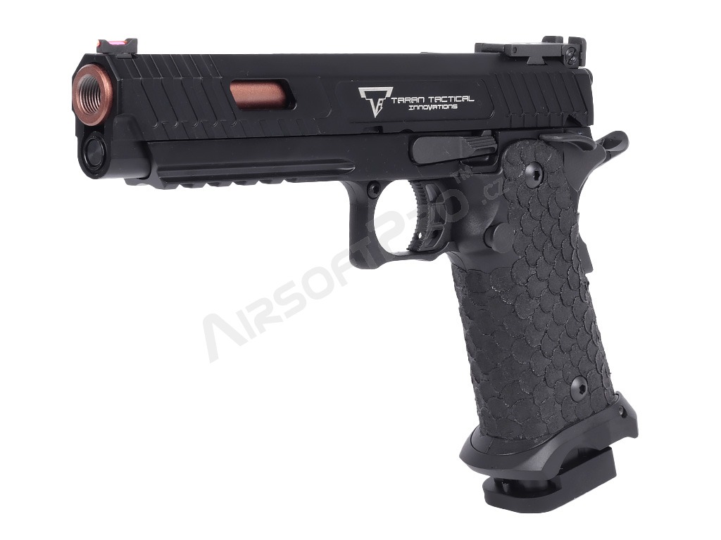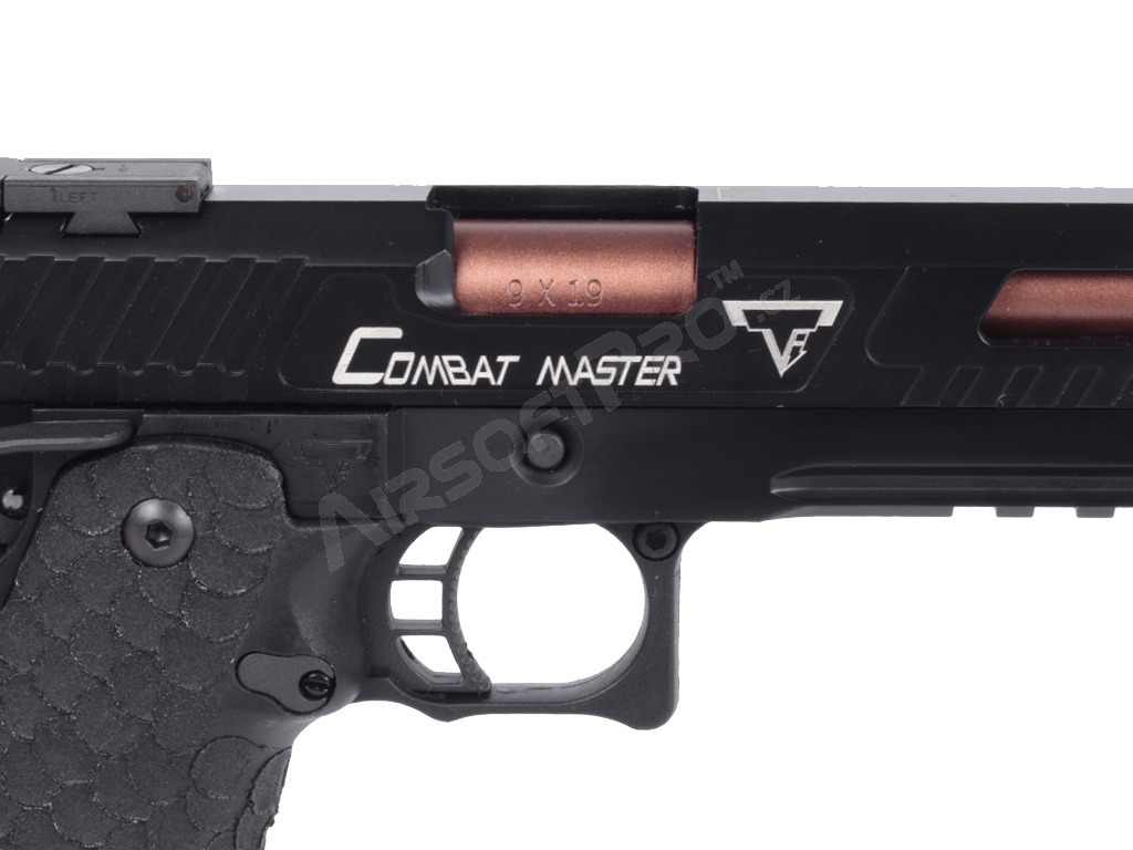 Pistola je postavená na robustnom ráme s hliníkovým záverom, ktorý zbrani dodáva potrebnú odolnosť a realistickú hmotnosť 1030 g. Na závere aj ráme nájdete autentické laserové značenie a hlboké gravírovanie log Taran Tactical Innovations a označenie Combat MasterSpoľahlivé vnútorné diely