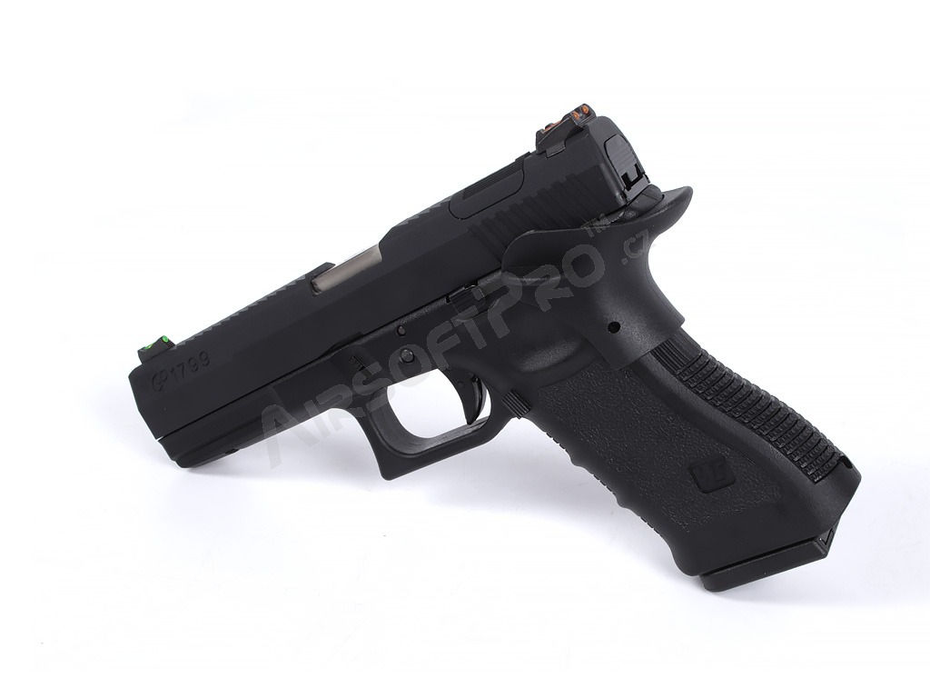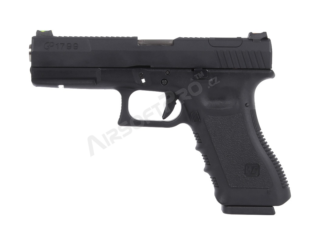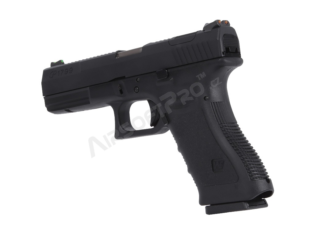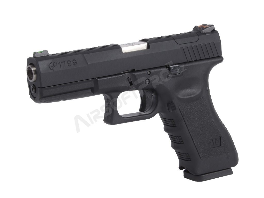 Airsoftová pištoľ GP1799B - GBB, strieborný kovový záver, čierny rám [WE] Moderná replika modelu GP1799 (typ B) od taiwanskej firmy WE.