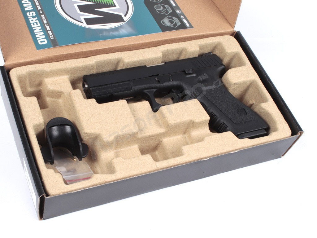 Ide o plynovú pištoľ — plyn sa plní do zásobníka cez plniaci ventil v jeho spodnej časti. Používa sa plyn Green Gas, ktorý nájdete v ponuke nášho e-shopu. Na jedno naplnenie je možné vystreliť približne 20–30 BB guličiek v závislosti od teploty prostredia.