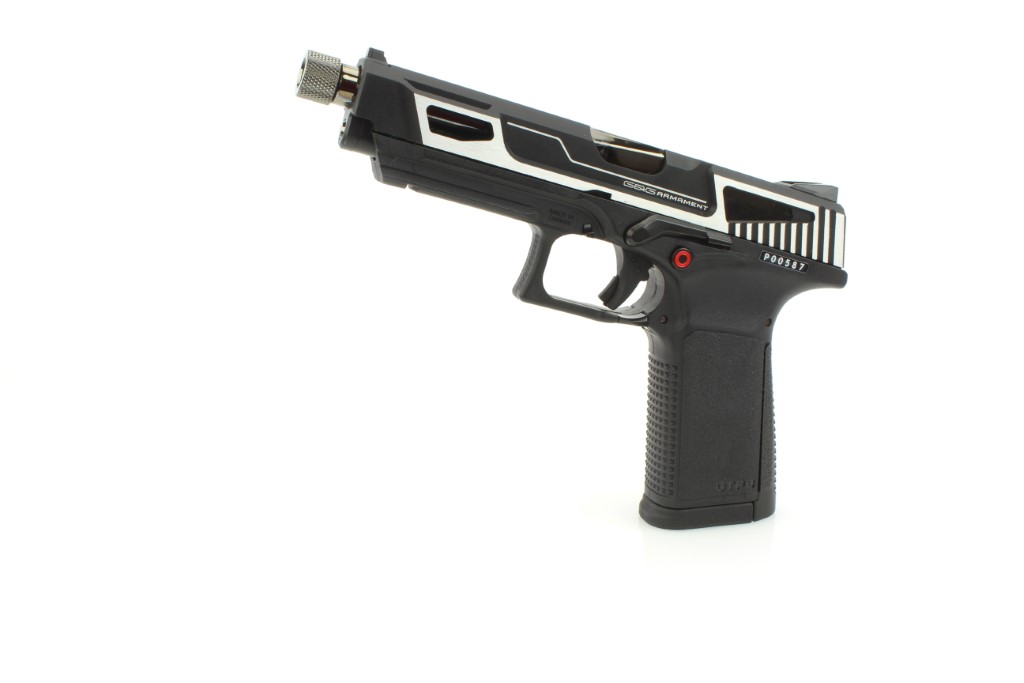 Jedná sa o zbraň, ktorá nemá reálnu predlohu, vychádza však z koncepcie moderných pištolí a prináša všetky ich výhody a prednosti. Pár príkladov za všetky: výmenný chrbát rukoväte, jednoduchá rozborka, záchyt zásobníka integrovaný v lúčiku, vynikajúca ergonómia. Na zbrani ďalej nájdeme závit na tlmič, ktorý má priemer 12mm.