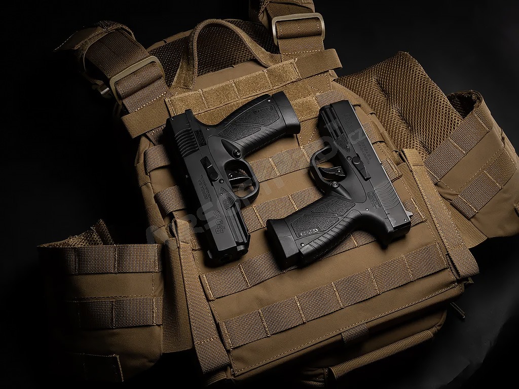 Airsoftová CO2 replika pištole BERSA® BP9CC s blowbackom a s kovovým záverom. Elegantný a moderný dizajn verne odráža vzhľad jej skutočného náprotivku, vrátane autentických označení a detailov. Či už ju používate na streľbu na terč, na tréning alebo len na zábavu: pištoľ BERSA BP9CC ponúka pôsobivú kombináciu realizmu, výkonu a kompaktnej praktickosti.