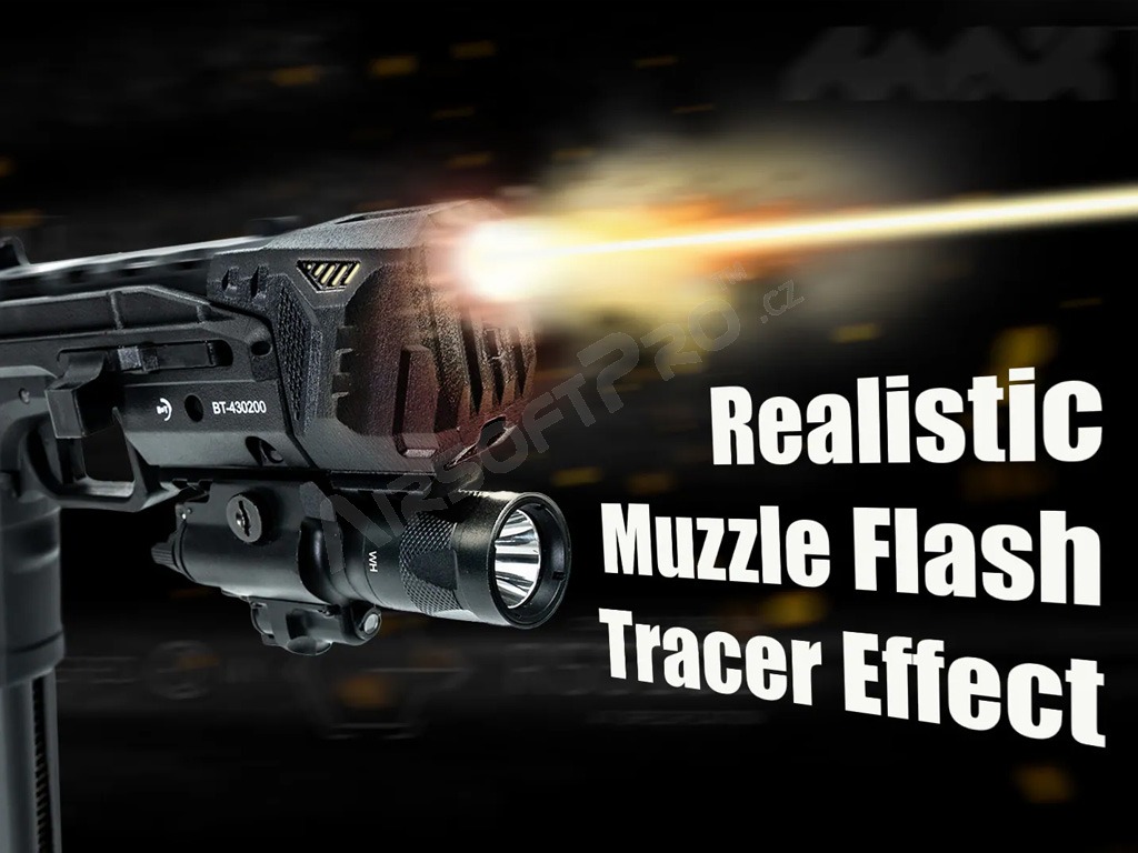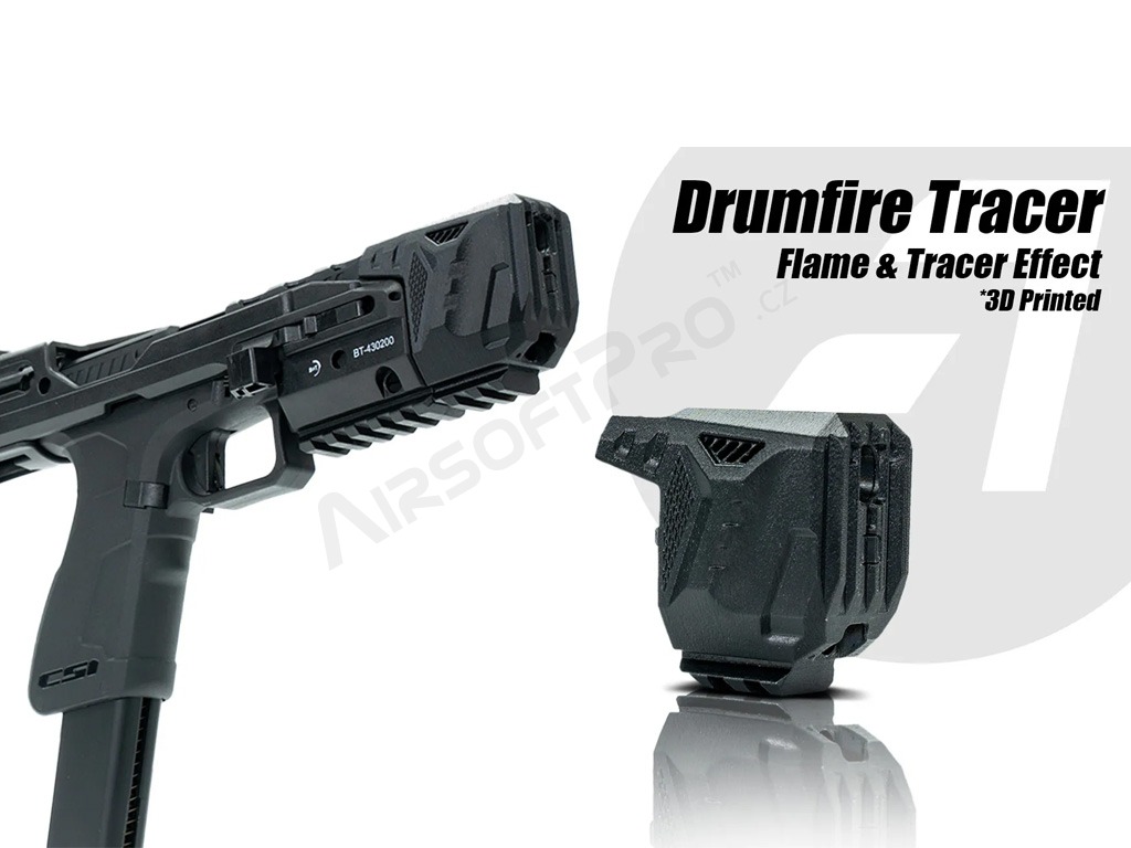 Acetech Drumfire je ultimátnou voľbou pre hráčov, ktorí nechcú robiť kompromisy medzi mobilitou pištole a stabilitou samopalu, a navyše chcú ohromiť vizuálnym efektom výšľahu pri každom výstrele.