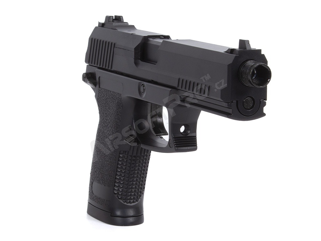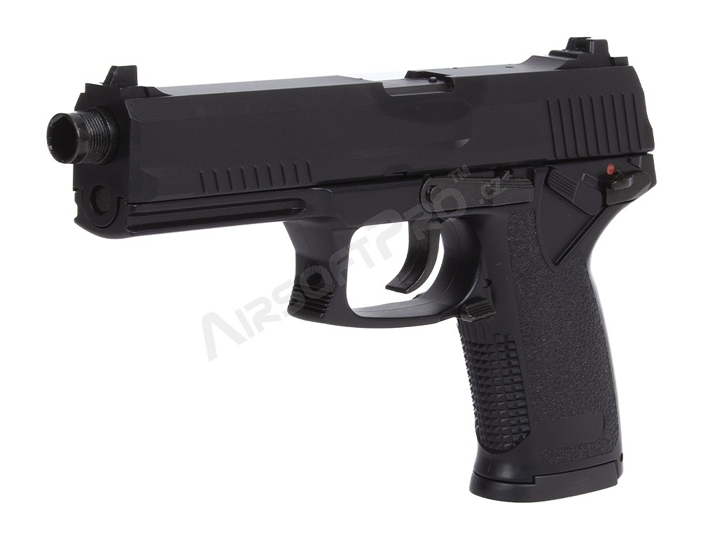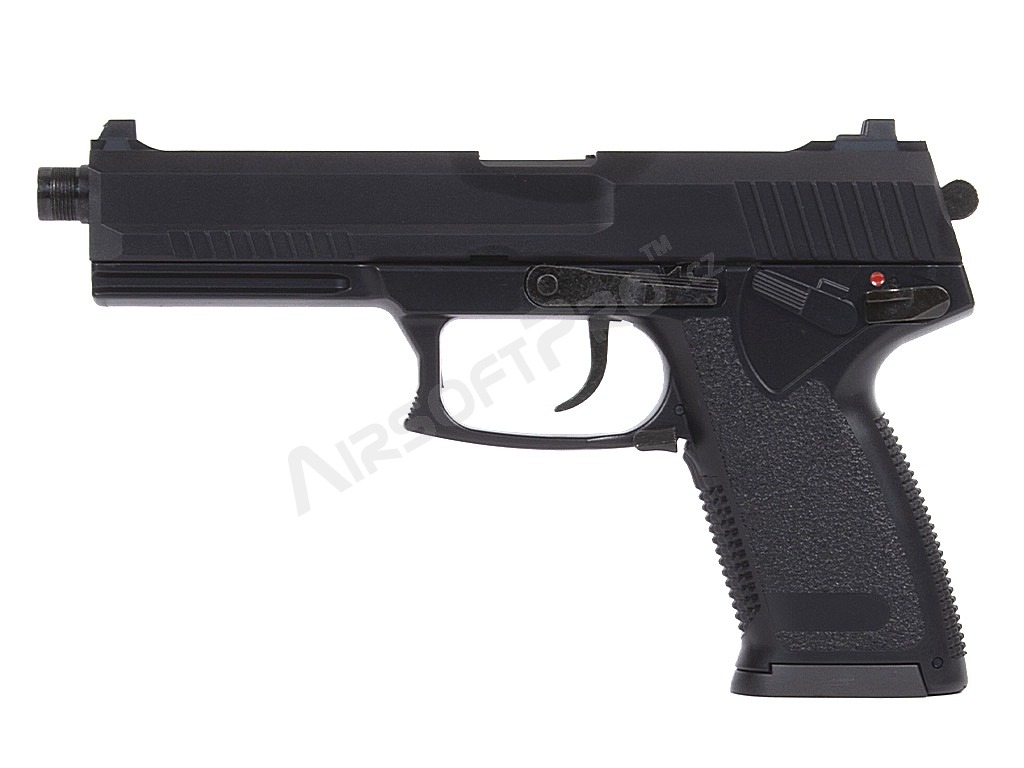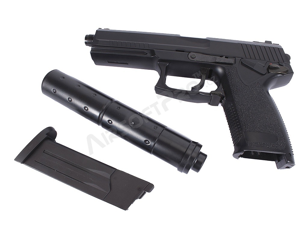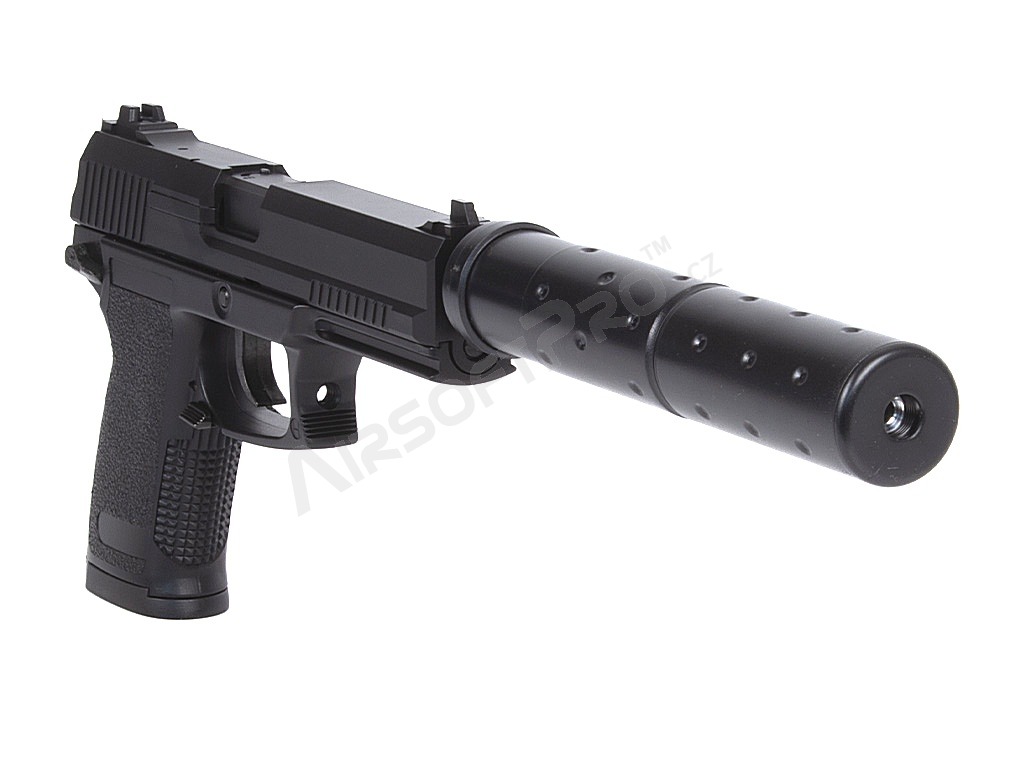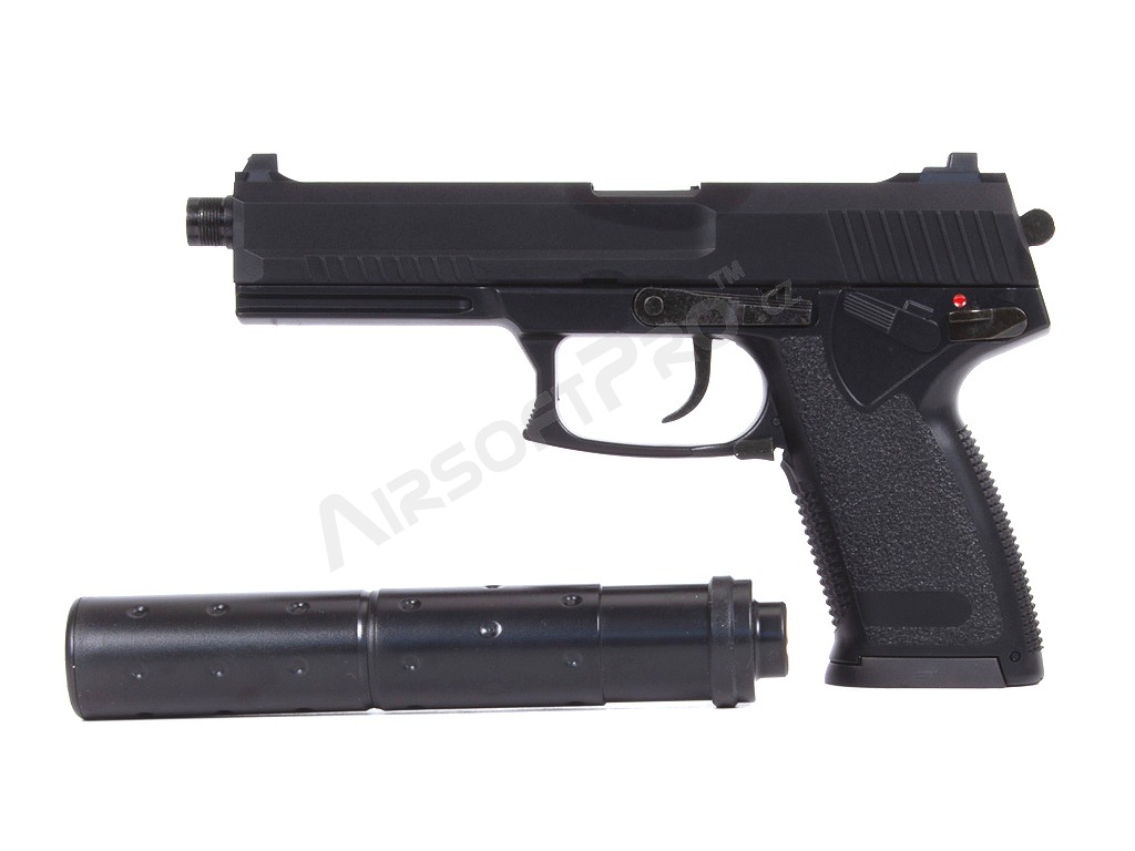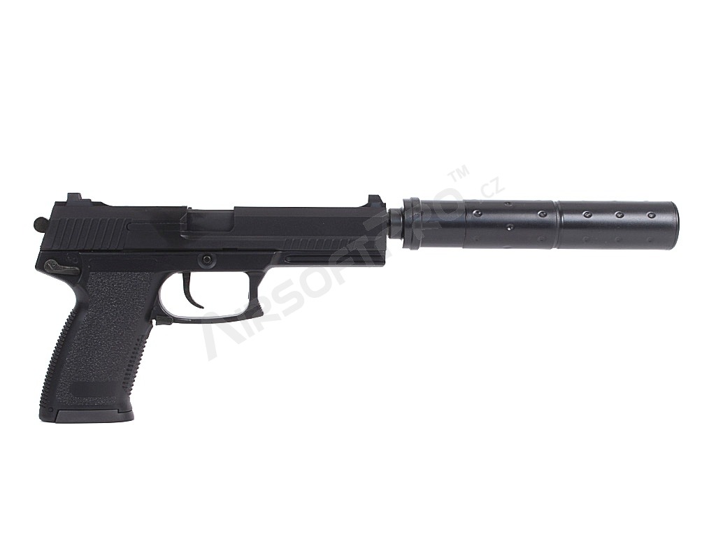 Replika pištole MK23 SOCOM od Y&P. Konštrukčne takmer identická so značkovými zbraňami Tokyo Marui. Aj zásobník je kompatibilný. Je vyrobená 1:1 k svojej reálnej predlohe a veľmi dobre spracovaná. Hoci je plastová, je na nerozoznanie od originálu. Drobné diely na pištoli sú kovové. Napríklad hlaveň, páčky poistiek, celý zásobník a pod. Vďaka ťažkému kovovému zásobníku reálneho vzhľadu je celková hmotnosť pištole slušných 780 g. V balení nájdete okrem pištole so zásobníkom predovšetkým tlmič (dĺžka 19,5 cm). Ten môžete bez akejkoľvek redukcie priamo naskrutkovať na hlaveň zbrane a získať tak nielen luxusne vyzerajúci komplet, ale aj tichšiu a presnejšiu zbraň. Vnútri tlmiča je totiž vnútorná hlaveň, ktorá nadväzuje na hlaveň pištole. To zvyšuje presnosť zbrane a mierne aj výkon. Plášť tlmiča je tiež plastový.