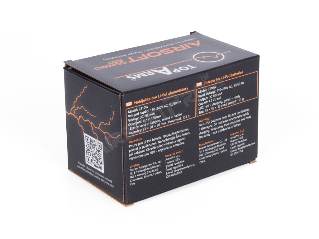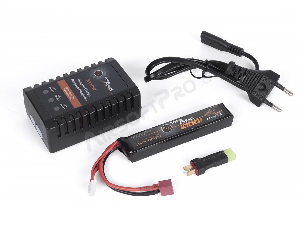Combo set: nabíjačka Li-Po, Li-Ion batérií B310W +11.1V 1000mAh batéria [TopArms] Sada inteligentnej 10 W nabíjačky s balancerom B310W a kvalitného akumulátora 11,1 V 1000 mAh značky TopArms.