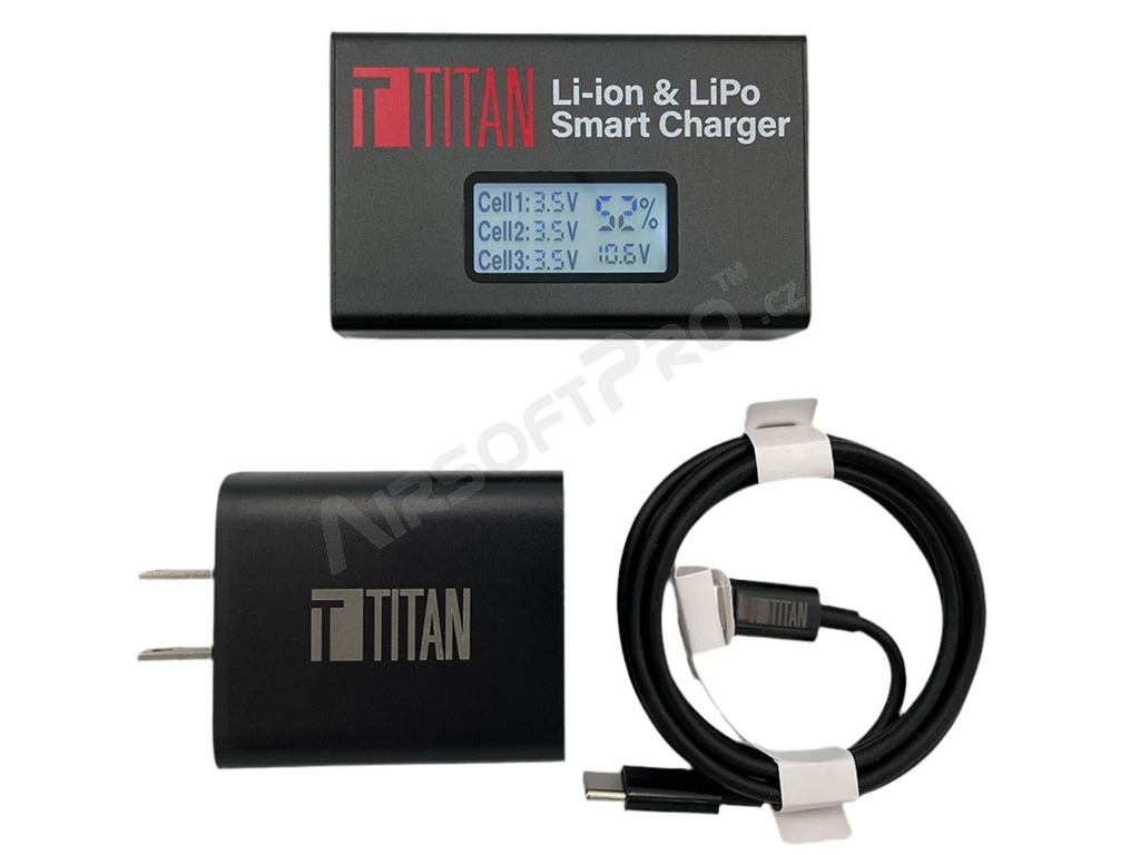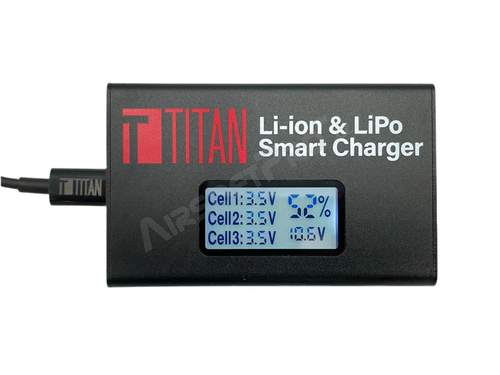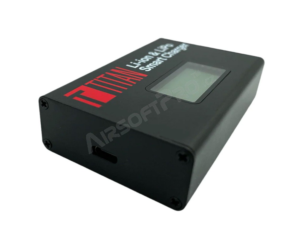 Rýchly digitálny nabíjač TITAN V2 s displejom určený na nabíjanie 2-3 článkových Li-Ion / Li-Po akumulátorov. Akumulátory sú nabíjané pomocou servisného konektora.