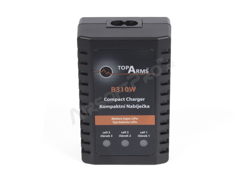 Kompaktná nabíjačka Lipol batérií B310W [TopArms] Inteligentná 10 W nabíjačka s balancerom TopArms B310W pre 2 - 3 článkové (7,4 a 11,1 V) Li-Po / Li-Ion akumulátory, u ktorej nemusíte strážiť dobu nabíjania.