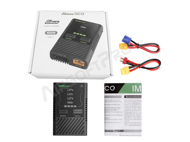 Univerzálny nabíjač iMars mini G-Tech 60W pre LiPo, LiHV, LiFe, NiMH (bez AC adaptéra) [Gens ace] Univerzálna nabíjačka Gens ace Imars Mini je inteligentná nabíjačka určená pre inteligentné akumulátory Gens ace G-Tech. Je tiež kompatibilný aj s bežnými akumulátormi.