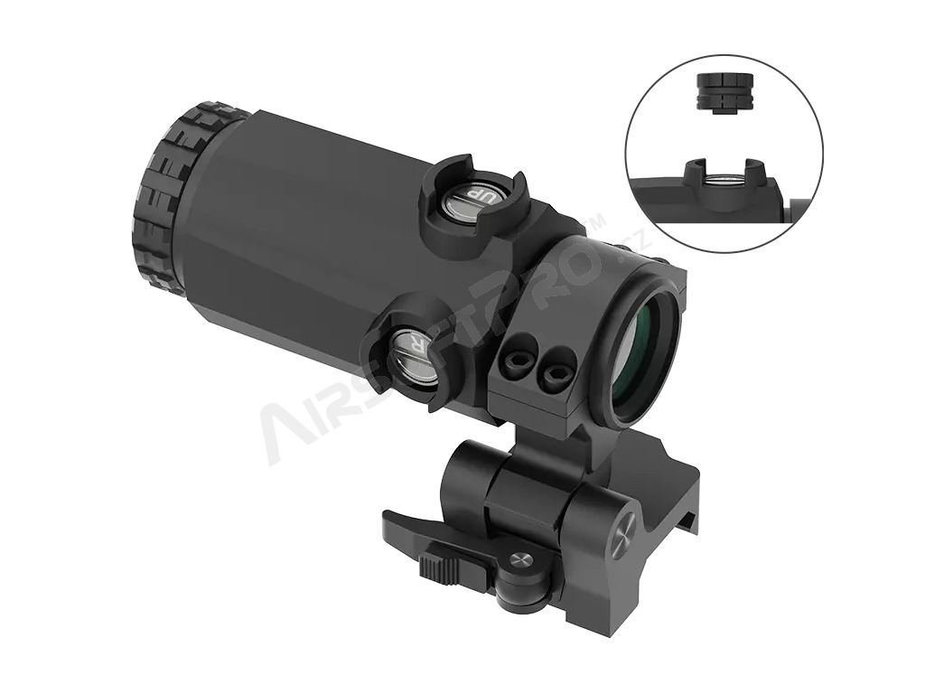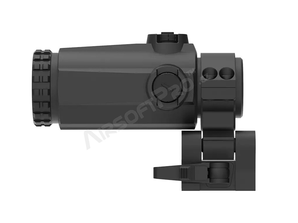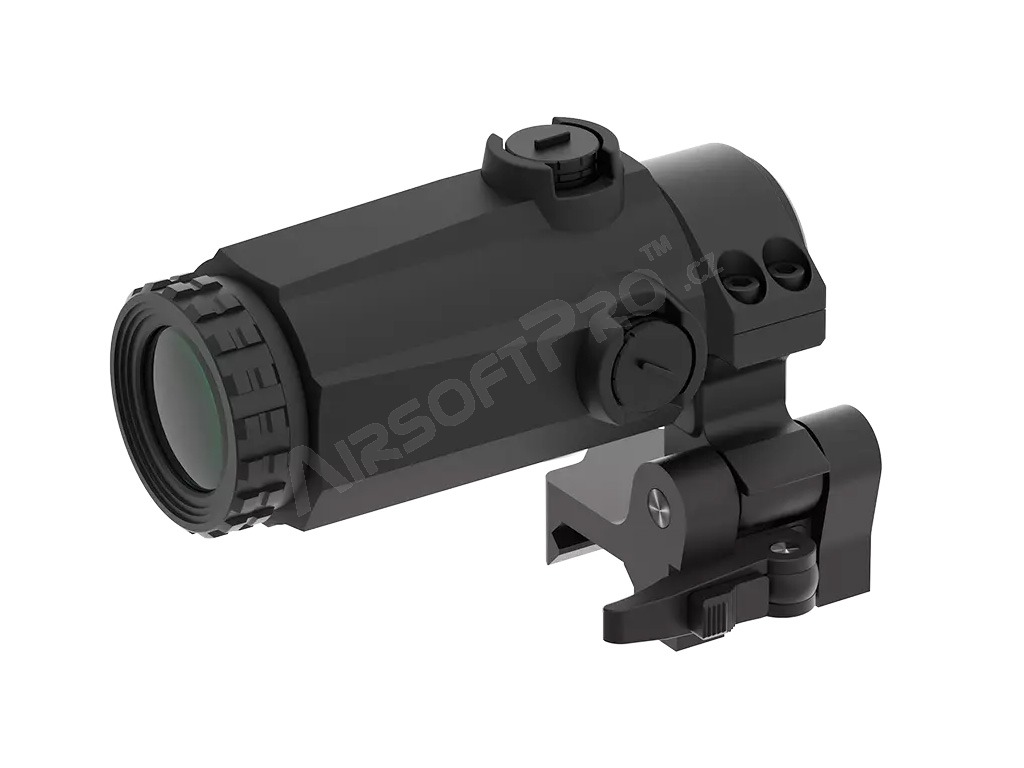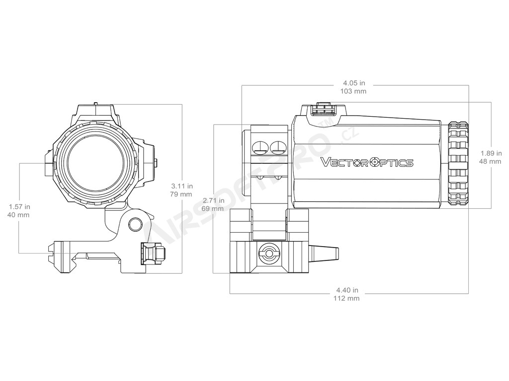 Vector Optics Maverick Gen III MIL 3x22 je zväčšovacia optika s 3x zväčšením, ktorá sa radí pred kolimátor (medzi kolimátor a strelca). Približuje cieľ pri mierení cez kolimátor na väčšiu vzdialenosť. Pri streľbe na kratšiu vzdialenosť je možné jednoducho odklopiť na stranu a mieriť ďalej iba cez kolimátor.