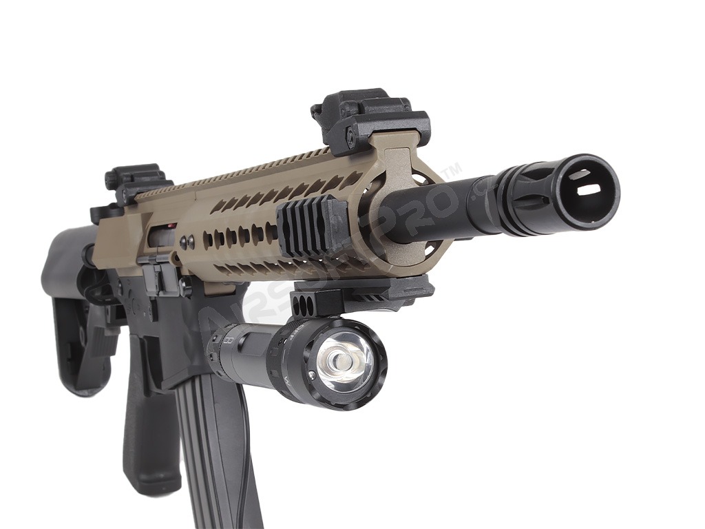 Svietidlo je určené na montáž na 22 mm RIS lištu. Napájanie je zaistené dvoma CR123A batériami, ktoré poskytujú dlhú výdrž a spoľahlivý výkon. Svietidlo je dodávané v praktickom plastovom kufríku, ktorý uľahčuje jej prepravu a skladovanie.