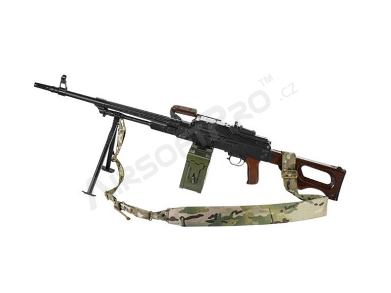 Tento odolný a široký taktický popruh v maskovacom prevedení Multicam je navrhnutý špeciálne pre použitie s ťažšími replikami, ako je guľomet PKM či podobné modely. Zaisťuje pohodlné nosenie zbrane pri dlhších hrách alebo presunoch, zároveň umožňuje rýchlu manipuláciu v akcii.