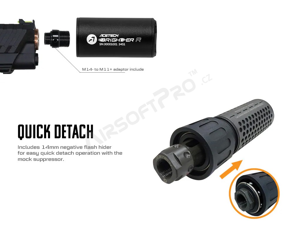 Acetech vyrába jedny z najsilnejších nasvetľovacie jednotiek rôznych variant pre airsoftové zbrane a pištole. Je možné ich inštalovať do bežných tlmičov a jednoducho je tak zmeniť v unikátnie nasvetľovacie.