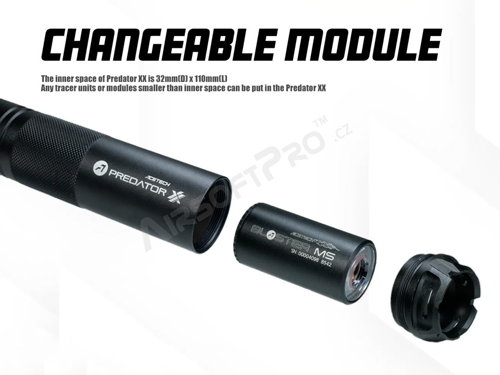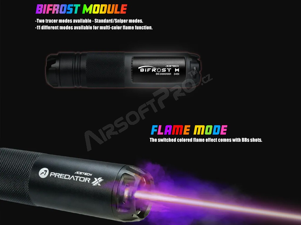 Nasvetľovacie tlmič Predator XX s imitáciou výšľahu (Bifrost M) - Čierny [ACETECH] Inovatívny nasvetľovací tlmič Predator XX značky Acetech s viacfarebnou imitáciou výšľahu plameňa.