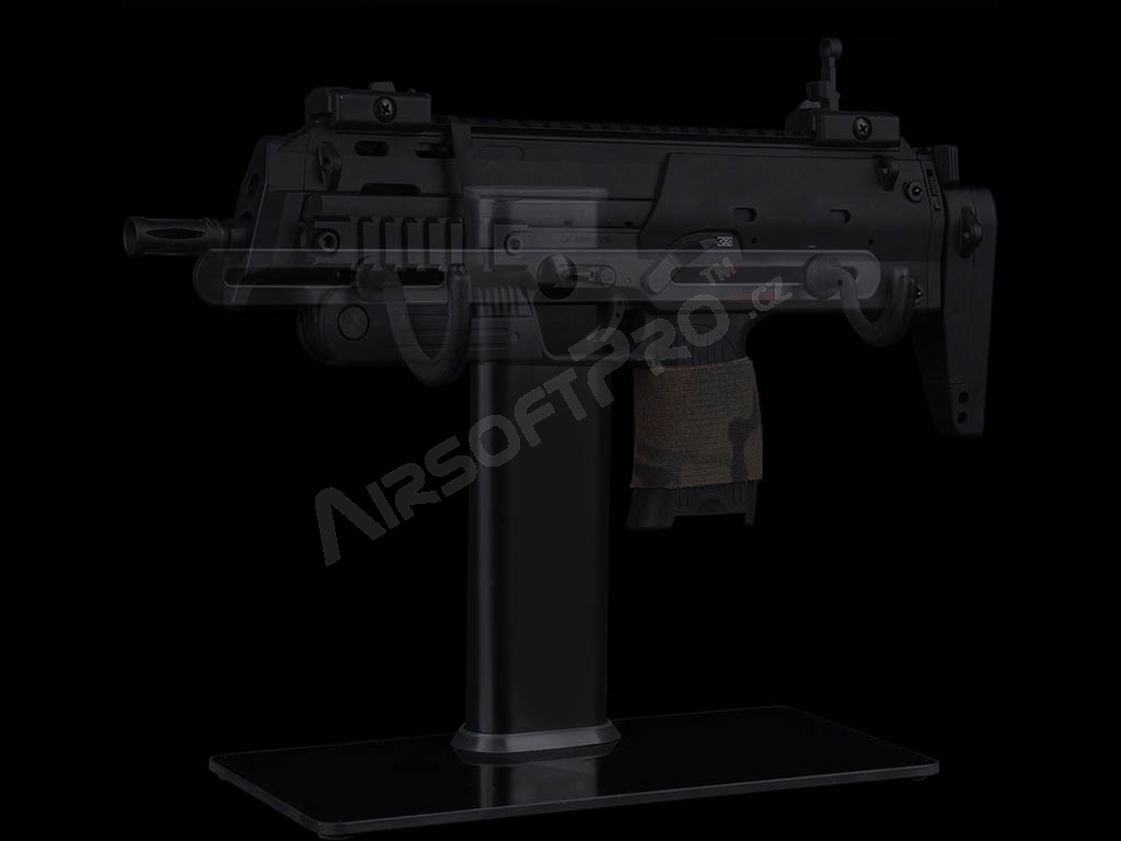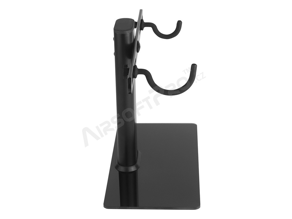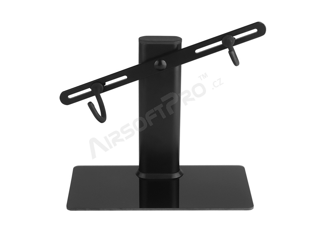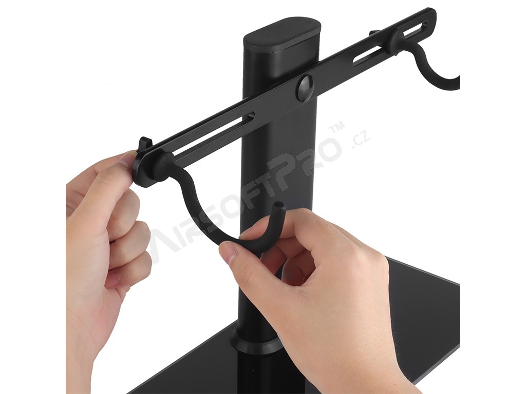 Stojánok využíva na uchytenie zbrane dvoch pogumovaných háčikov. Súčasťou balenia je 5 rôznych tvarov háčikov, a vďaka tomu je stojan vhodný pre prevažnú väčšinu dlhých zbraní. Rameno stojančeka je možné otáčať a dosiahnuť tak vzhľadovo efektívnu pozíciu vystavovanej zbrane. Navyše sklenená základňa elegantne podčiarkne vzhľad vystavenej pušky.