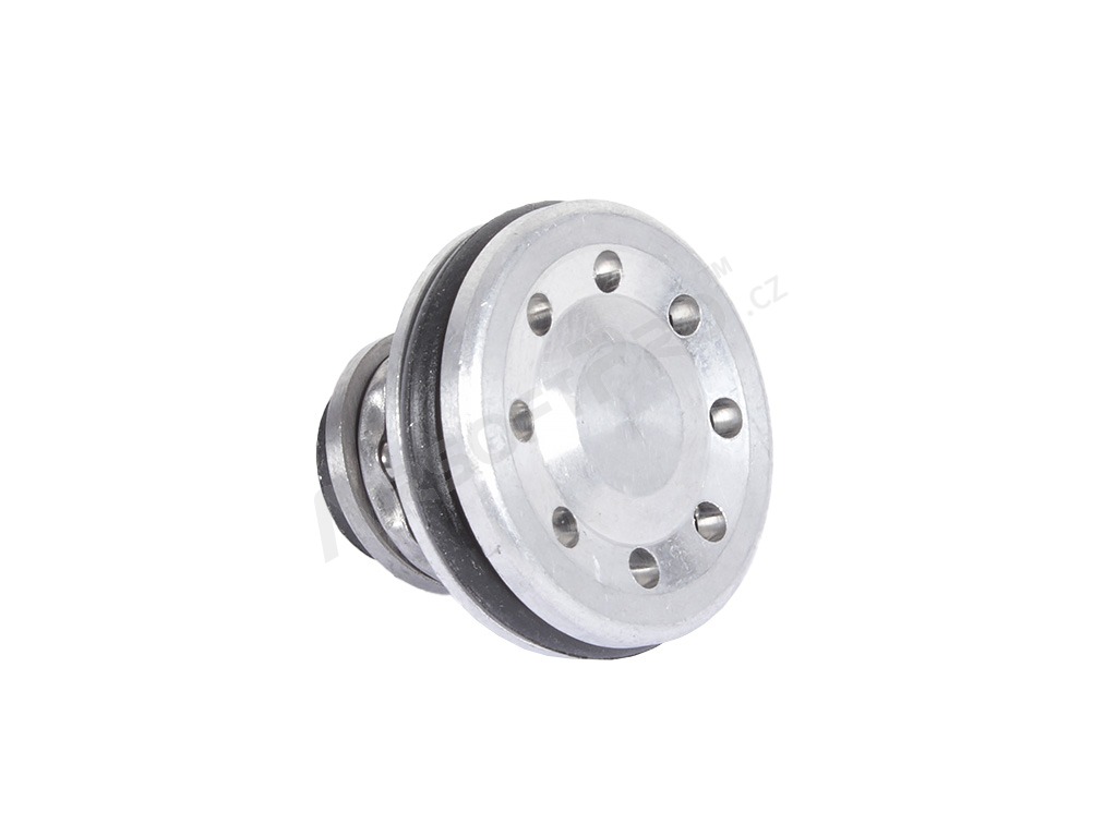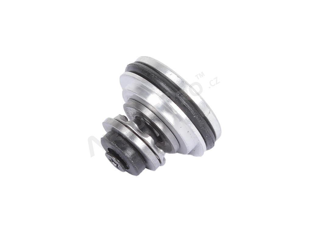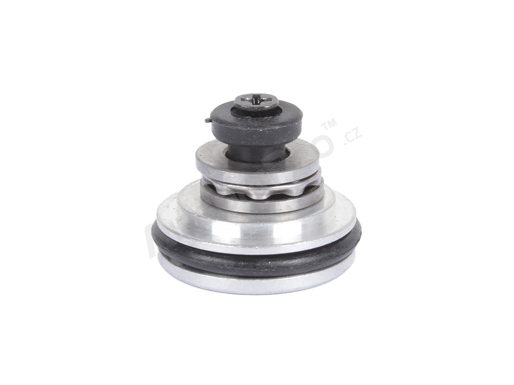 CNC Hliníková hlava piestu s ložiskom [Snow Wolf] Hliníková hlava piestu s protitlakou funkcií a ložiskom, určená pre upgrade airsoftových zbraní. Vďaka CNC spracovaniu ponúka presné rozmery a vyššiu odolnosť oproti štandardným plastovým dielom (12 g).