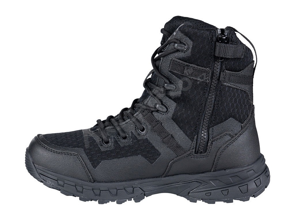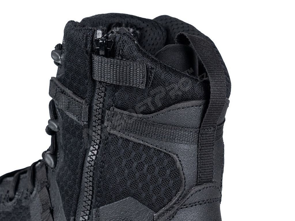 - Bočný zips pre rýchle obúvanie: Vybavené odolným postranným zipsom s poistkou na suchý zips, ktorý umožňuje bleskové obutie a vyzutie bez nutnosti rozväzovať šnúrky.