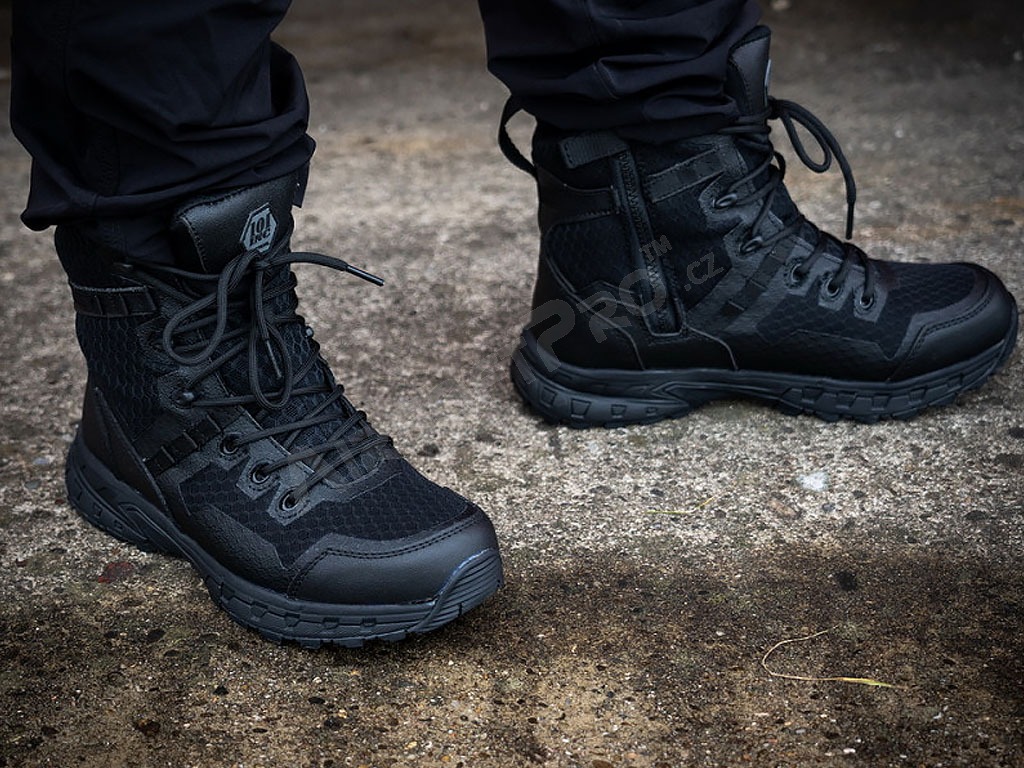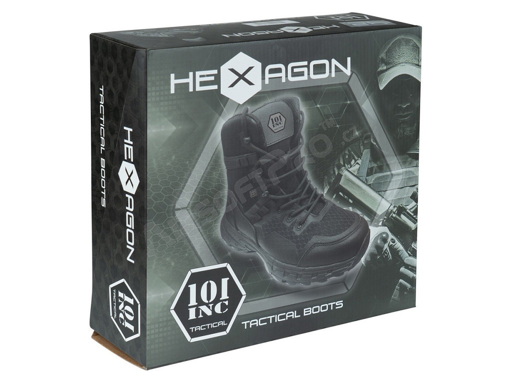 Topánky Hexagon - čierné [101 INC] Taktické topánky Hexagon značky 101 INC sú špeciálne navrhnuté pre potreby security profesionálov, military nadšencov a milovníkov outdoorových aktivít. Tieto ľahké topánky kombinujú moderné materiály s vysokou funkčnosťou pre maximálne pohodlie počas celodenného nosenia.
