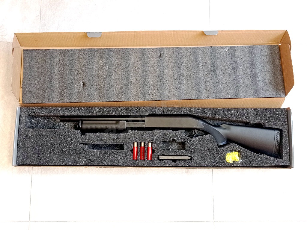 Airsoftová replika manuálná brokovnice v mierke 1:1.Telo vrátane hlavne je kovové s matnou povrchovou úpravou. Moderná pažba a nabíjací predpažbie je z odolného ABS plastu.V prednej časti pod hlavnou je oko na pripevnenie popruhu. Táto brokovnica používa namiesto klasického zásobníka imitáciu patrón . Guličky sa pomocou rýchloplničky naplní do patróny a tá sa potom vloží do zbrane. Kapacita patróny je 30 guličiek . Brokovnica pracuje na manuálnom princípe, kedy sa musí pred každým výstrelom natiahnuť reálnym pohybom predpažbia. Brokovnica na jedno natiahnutie vystrelí tri guľôčky . Zbraň má rovnako funkčnú poistku.