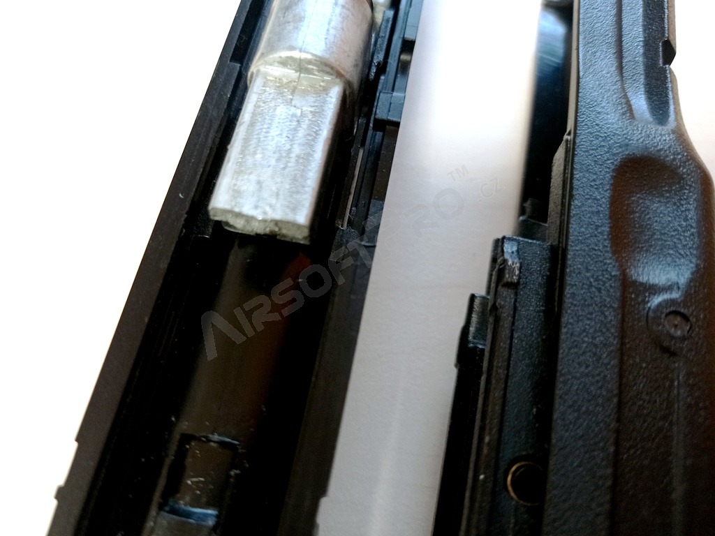 Zbraň má fixný hop-up systémom a funkčnú poistku. Odporúčame guľôčky s hmotnosťou od 0,16g do 0,20 g.