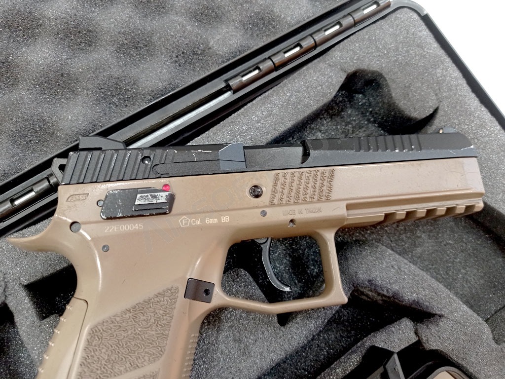 Airsoftová pištoľ CZ P-09 DT FDE, kovový záver, plyn, BlowBack + kufor - NESPOĽAHLIVÁ [ASG]