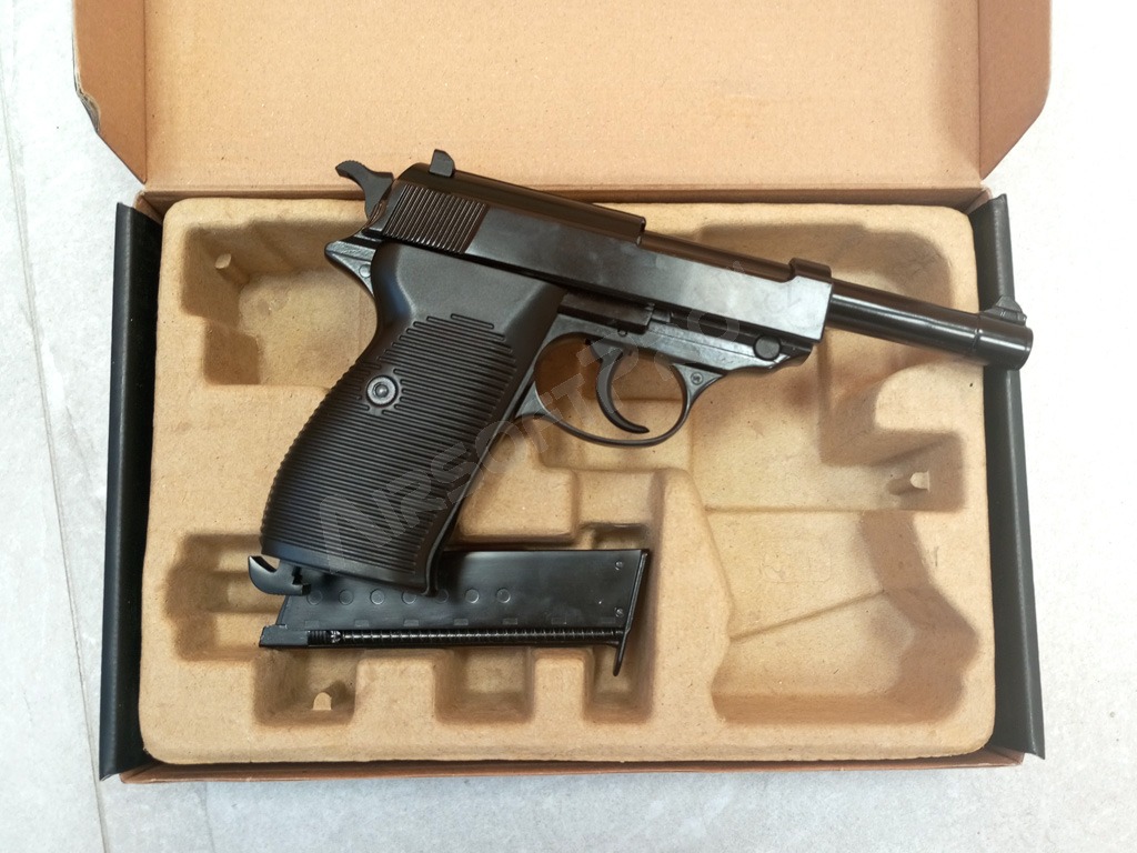 Airsoftová replika nemeckej pištole P38. Je celá vyrobená z kovovej zliatiny a váži tak 735g (vrátane prázdneho zásobníku). Črienky sú plastové.