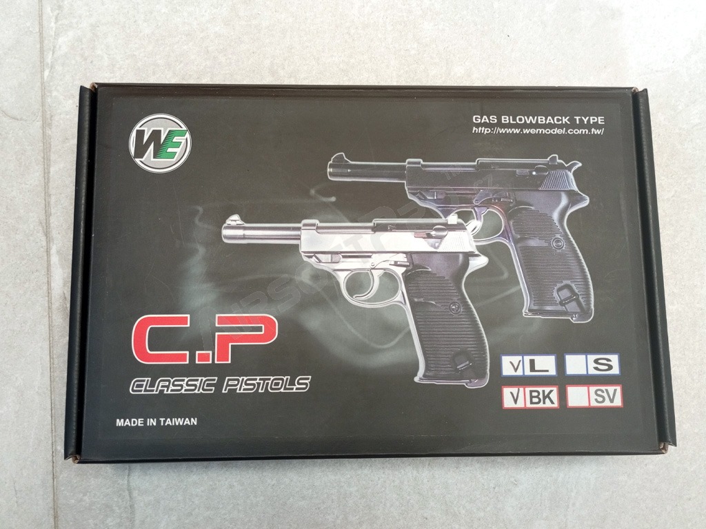 Airsoftová pištoľ P38 - plyn, celokov, BlowBack - čierna - NEFUNKČNÁ [WE] Ponúkame na predaj tento tovar s výraznou zľavou. Kusy sú obvykle vrátené zákazníkom, príp. z reklamácií, môžu niesť stopy použitia a nemusia mať kompletné príslušenstvo.