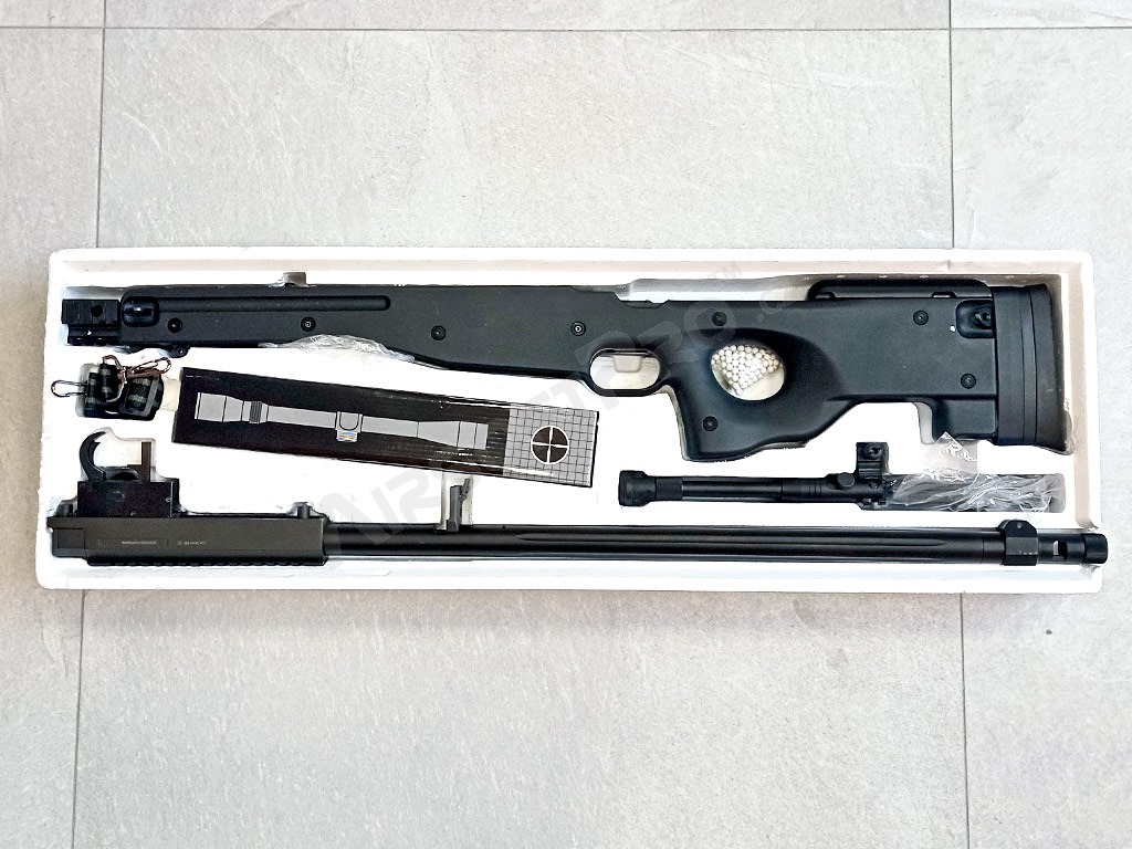 Airsoft sniper L96 (MB01C UPGRADE) + puškohľad + dvojnožka - čierna - VRÁTENÁ [Well]