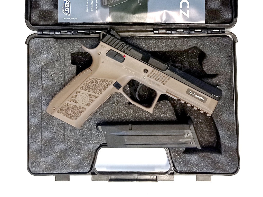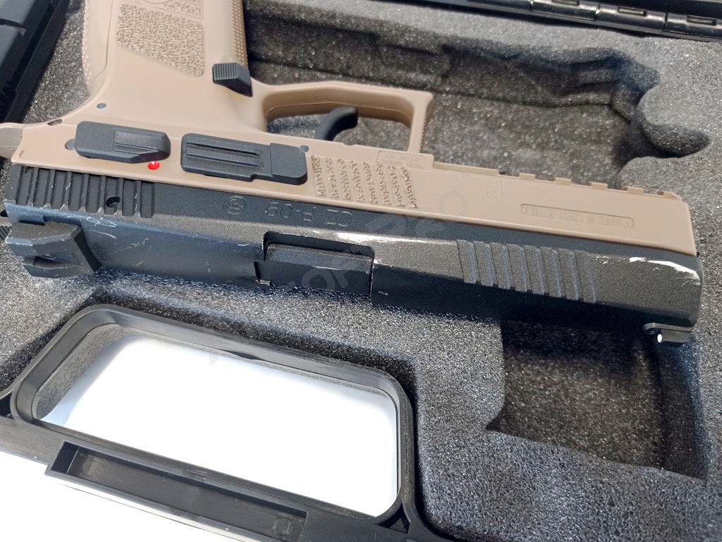 Airsoftová pištoľ CZ P-09 DT FDE, kovový záver, plyn, BlowBack + kufor - NESPOLEHLIVÁ [ASG] Ponúkame na predaj tento tovar s výraznou zľavou. Kusy sú obvykle vrátené zákazníkom, príp. z reklamácií, môžu niesť stopy použitia a nemusia mať kompletné príslušenstvo.