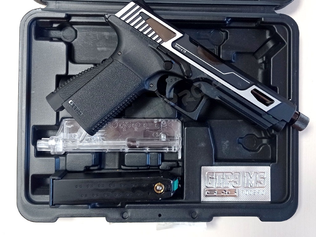 Airsoftová pištoľ GTP9 MS, plyn BlowBack (GBB) CNC záver - strieborná - VRÁTENÁ [G&G]