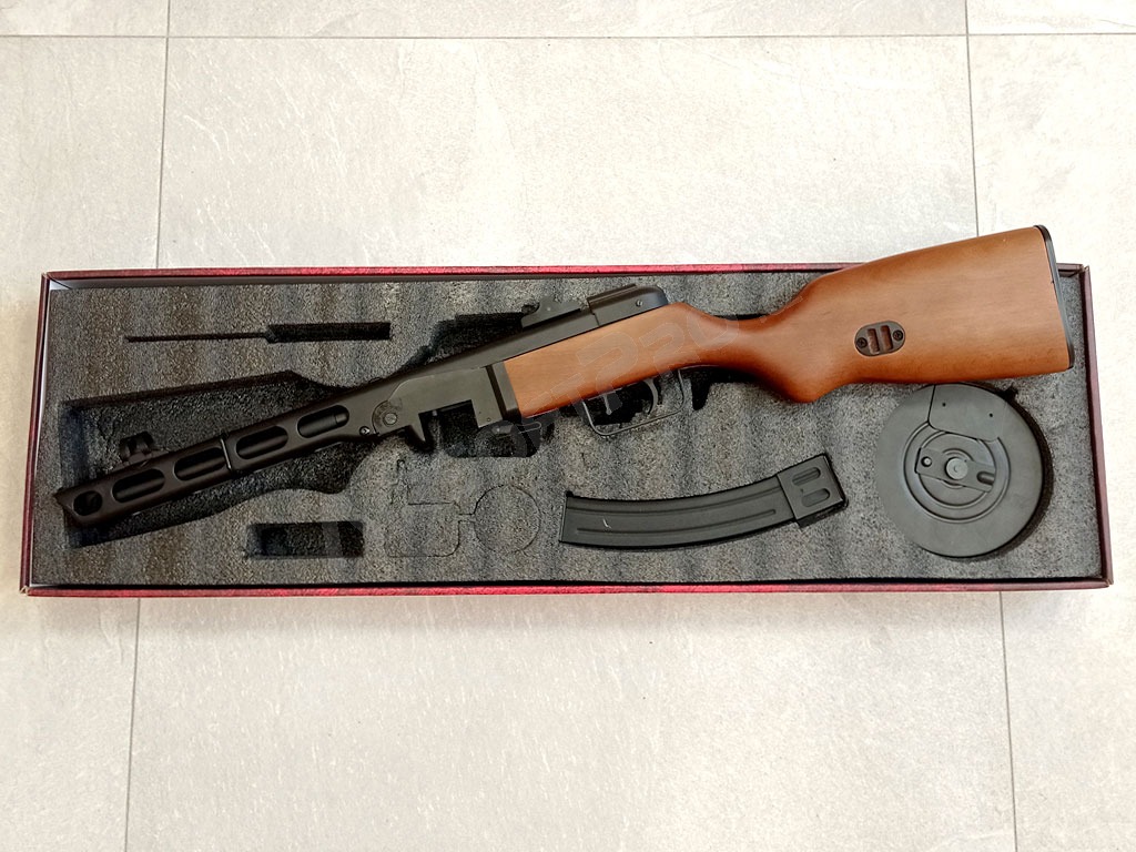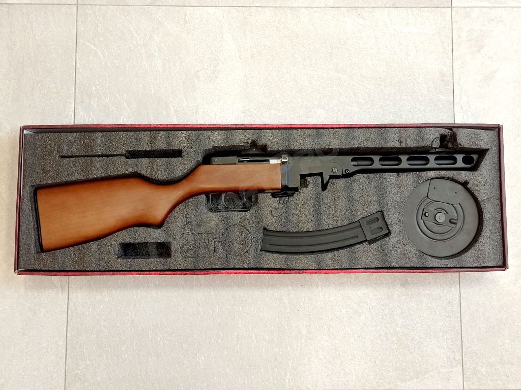 Túto klasiku medzi druhoválečnými zbraňami nie je nutné dlho predstavovať. PPSH čiže "Špagin" bol zbraní typickú pre Rudú armádu. Táto replika je vyrobená podľa svojej skutočnej predlohy celá z kovu a pravého dreva. Má aj elektrická BlowBack, ktorý pri streľbe pohybuje nielen naťahovacie pákou záveru, ale tiež výhozným okienkom záveru. Zbraň má naozaj kvalitne spracované drevo a reálne telo s razením.