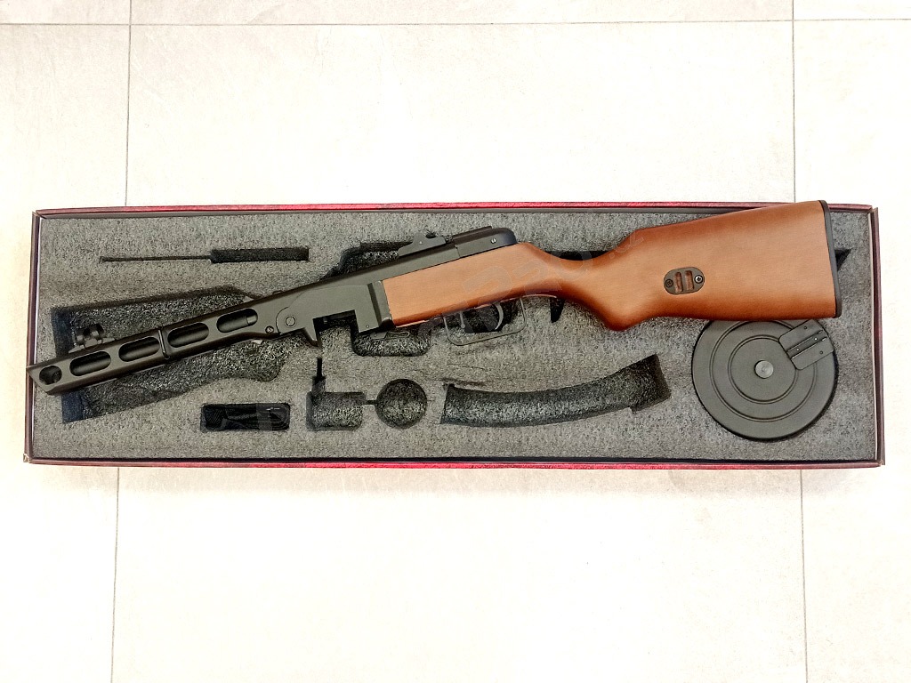 Túto klasiku medzi druhoválečnými zbraňami nie je nutné dlho predstavovať. PPSH čiže "Špagin" bol zbraní typickú pre Rudú armádu. Táto replika je vyrobená podľa svojej skutočnej predlohy celá z kovu a pravého dreva. Má aj elektrická BlowBack, ktorý pri streľbe pohybuje nielen naťahovacie pákou záveru, ale tiež výhozným okienkom záveru. Zbraň má naozaj kvalitne spracované drevo a reálne telo s razením.