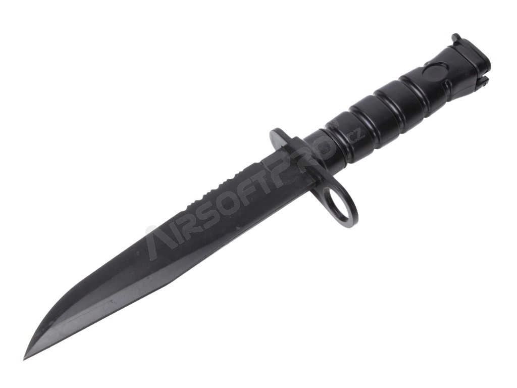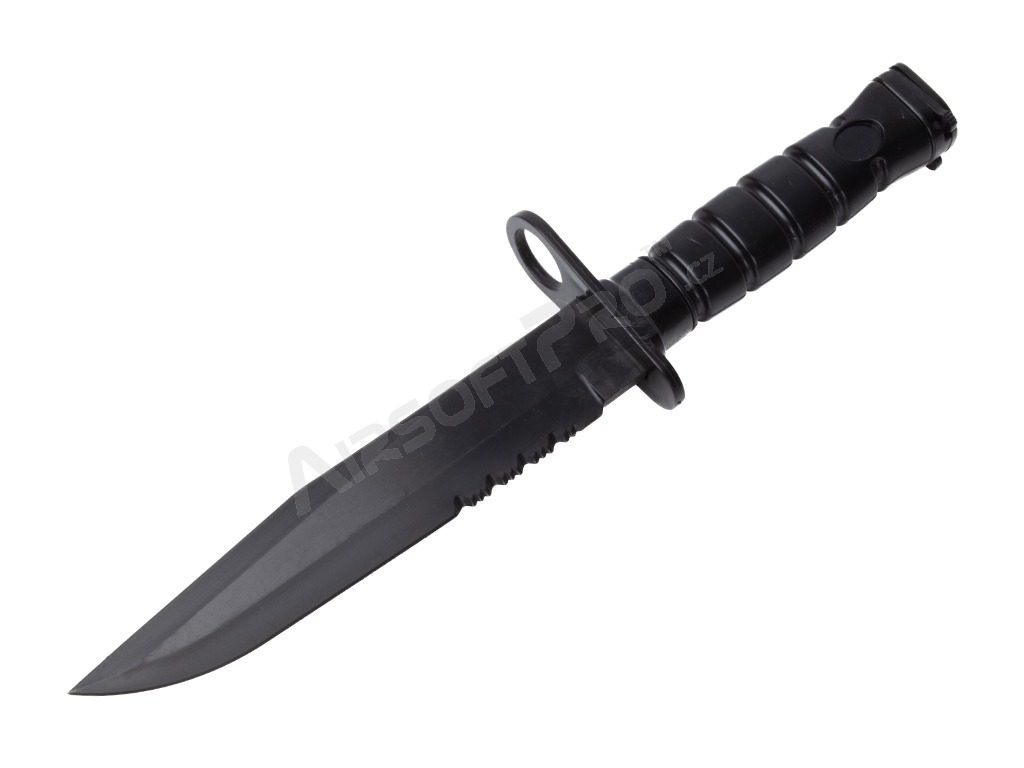Realistická replika taktického bojového noža/bajonetu M10 s typickým plastovým puzdrom. Tento bezpečný cvičný nôž s gumovou čepeľou je ideálny pre airsoftové využitie, nácvik techník zblízka alebo ako štýlový doplnok výstroja.