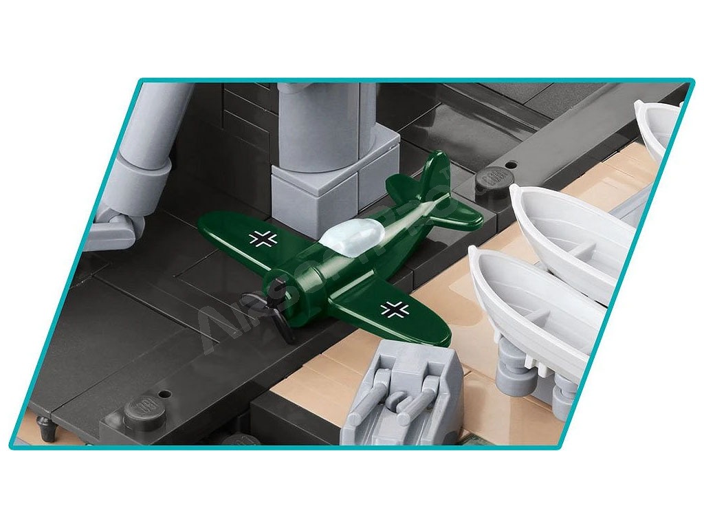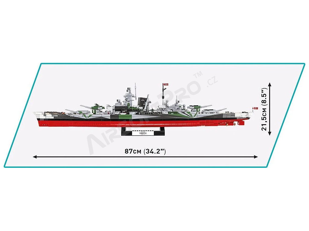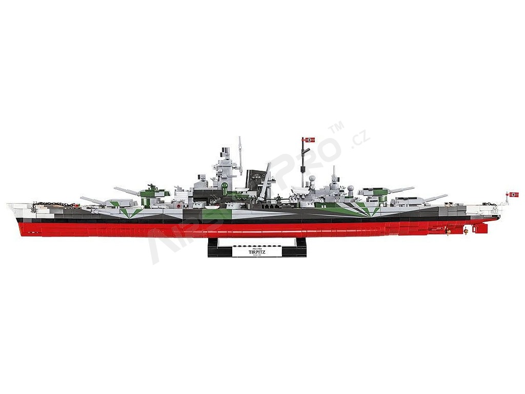 Stavebnica WW II Battleship Tirpitz (1:300) [Cobi] Tirpitz bola nemecká bojová loď z druhej svetovej vojny, spustená na vodu 1. apríla 1939. Bola sesterskou loďou bojovej lode „Bismarck“ a najväčšou jednotkou Kriegsmarine v rokoch 1941–1944. Bojovú pripravenosť dosiahla v septembri 1941. Bola potopená 12. novembra 1944 blízko nórskeho Tromso britským letectvom.