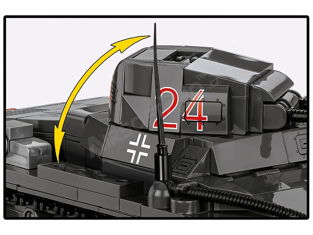 - 654 dielikov na zostavenie je navrhnutých tak, aby realisticky replikovalo tank z 2. svetovej vojny.