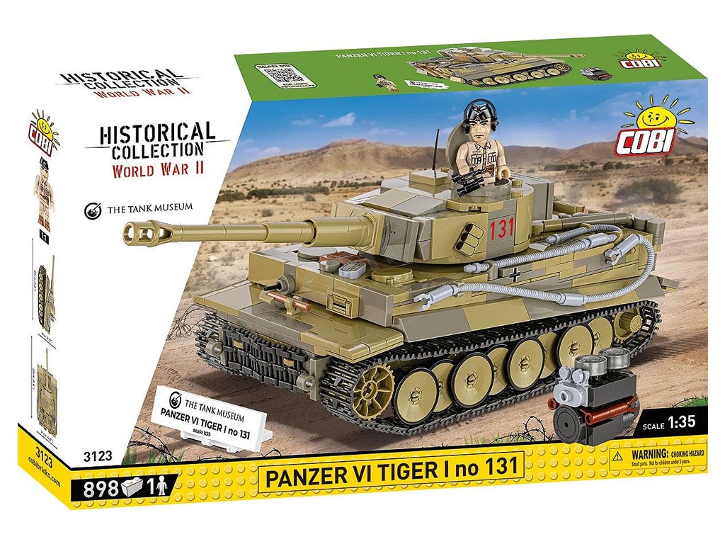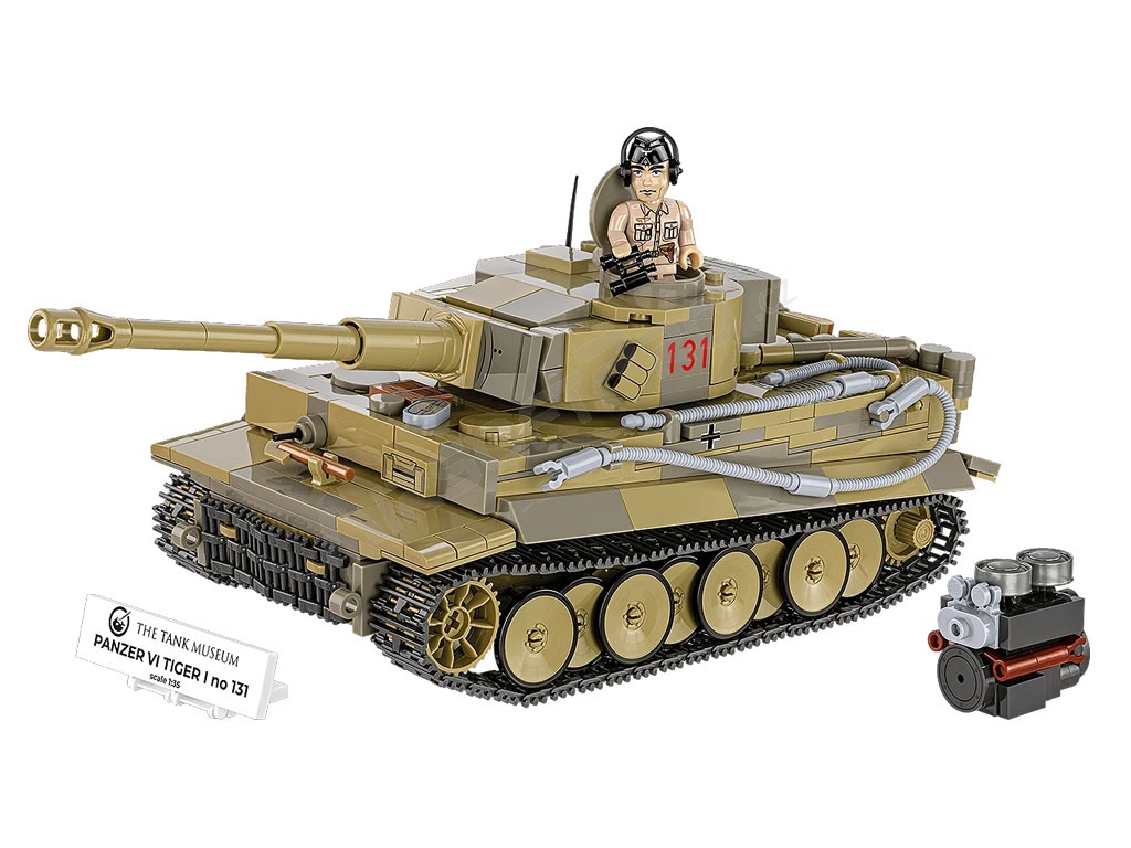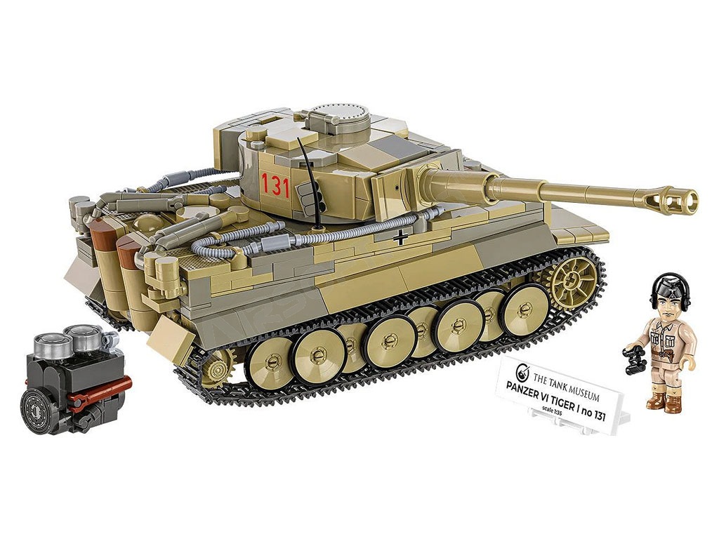 Stavebnica WW II Panzer VI Tiger I no 131 (1:35) [Cobi] Unikátny model veľmi rozpoznateľného a stále jazdiaceho tanku PzKpfw VI Tiger s číslom 131. Slávny Tiger bol Britmi ukoristený v Afrike počas 2. svetovej vojny av súčasnej dobe je najväčšou atrakciou Tankového múzea v Bovingtone vo Veľkej Británii.