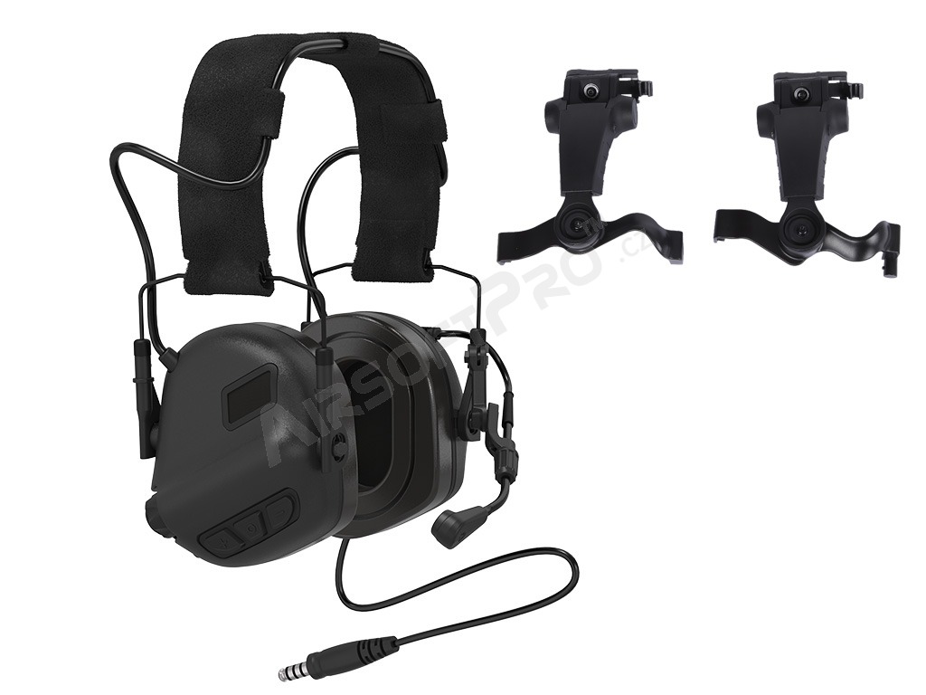 Elektronická slúchadlá Earmor M32X PLUS ARC - čierna [EARMOR] Sada EARMOR M32X PLUS obsahuje slúchadlá s mikrofónom EARMOR M32 PLUS a montáž na helmu M16A s lištou ARC (napr. pre FAST alebo MICH helmu).