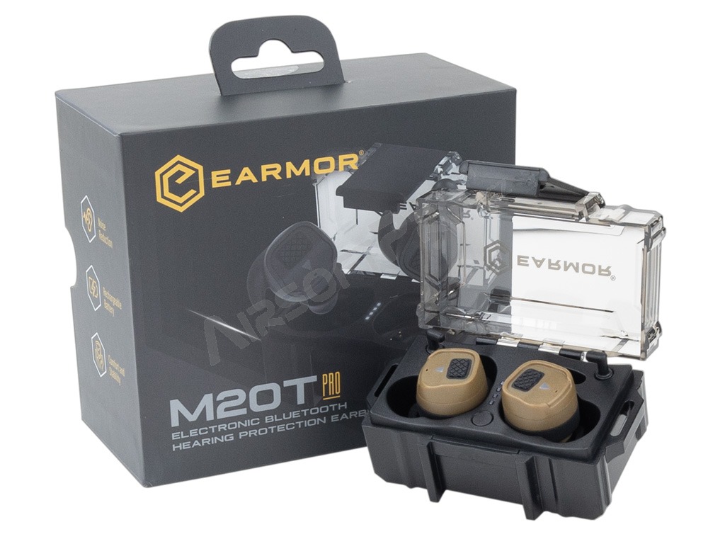 Elektronické zátky do uší M20T Pro Bluetooth - Coyote Brown [EARMOR] Strelecké štuple do uší EARMOR M20T PRO ponúkajú redukciu hluku nad 82 dB, s indexom redukcie hluku (NRR) 30, stabilným pripojením Bluetooth 5.4, výdržou batérie až 10 hodín a kompaktným, pohodlným dizajnom pre všestranné použitie.