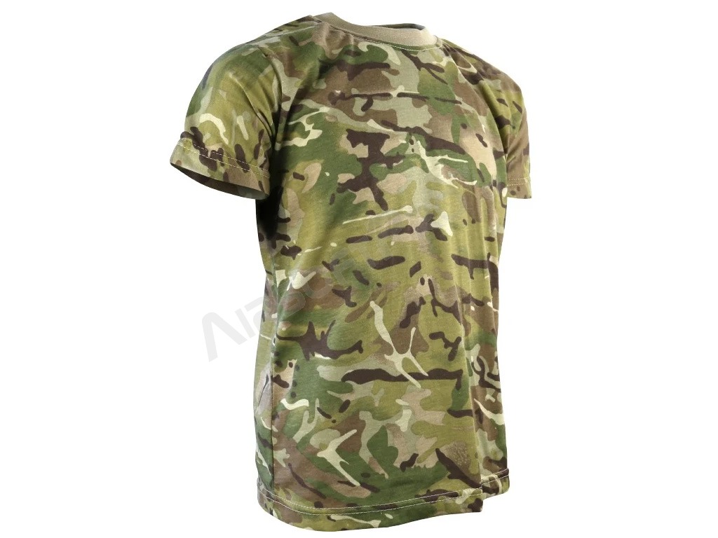 Detské tričko s maskovacím vzorom má okrúhly výstrih, krátke rukávy a celoplošný maskovací vzor. Tričko je vyrobené zo 100% bavlny s gramážou 170 g/m2, čo z neho robí ideálne tričko na každodenné nosenie alebo hranie pre malých vojakov.