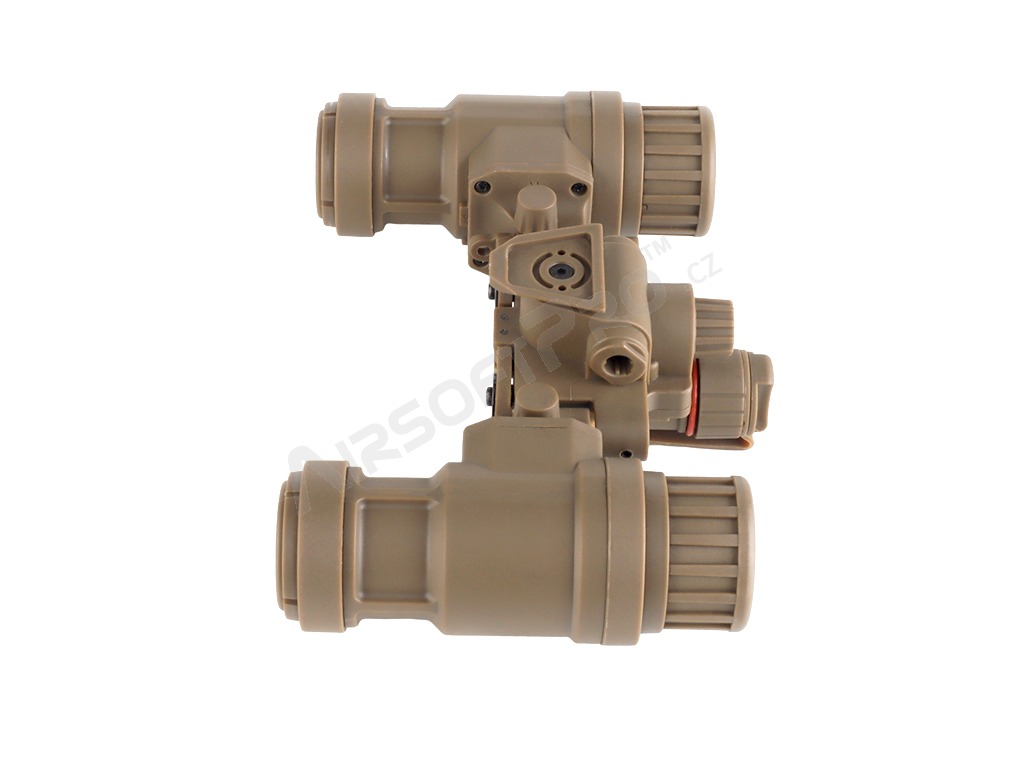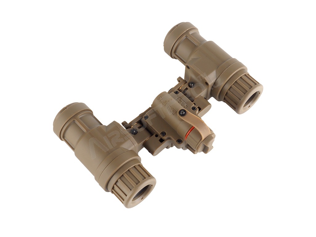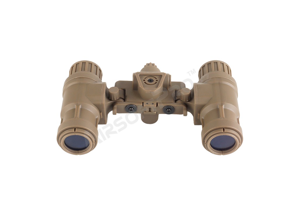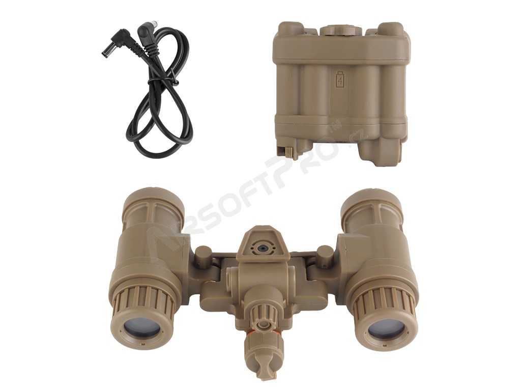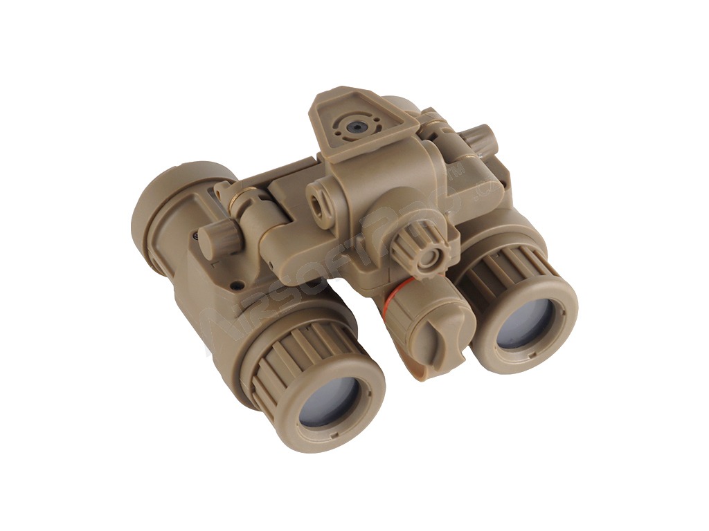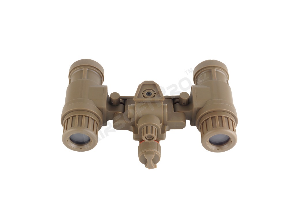 Model je vyrobený z odolného polyméru, ktorý ponúka dobrú pevnosť pri zachovaní nízkej hmotnosti. Konštrukcia imituje skutočné binokulárne NVG používané v armádnych zostavách a prispieva k autentickému taktickému vzhľadu bez zbytočnej záťaže. Replika nočného videnia je doplnená o dve svietiace zelené diódy okulároch, ktoré sa dodajú väčšiu realistickosť produktu. Diódy sa zapnú pri sklopení oboch okulárov nočného videnia.