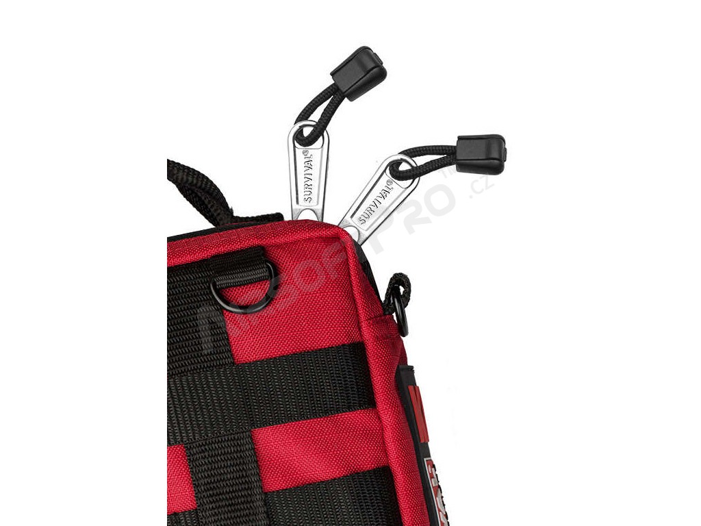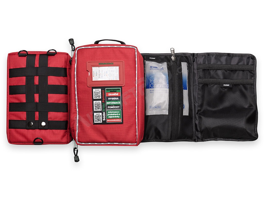 Lekárnička má odolný obal, kvalitné YKK zipsy a je kompatibilný s MOLLE systémom. Celý obsah je v slovenčine, vrátane návodov, popisov a príručky prvej pomoci. K dispozícii je aj mobilná aplikácia iFirstAid zadarmo.