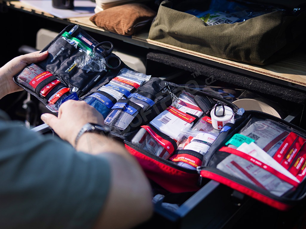 Tento princíp je rovnaký naprieč všetkými lekárničkami SURVIVAL; ak poznáte jeden KIT, vyznáte sa vo všetkých. Large KIT je postavený tak, aby poskytoval rýchlu orientáciu, praktické usporiadanie a jednoduché použitie — bez zbytočného hľadania a zložitostí.